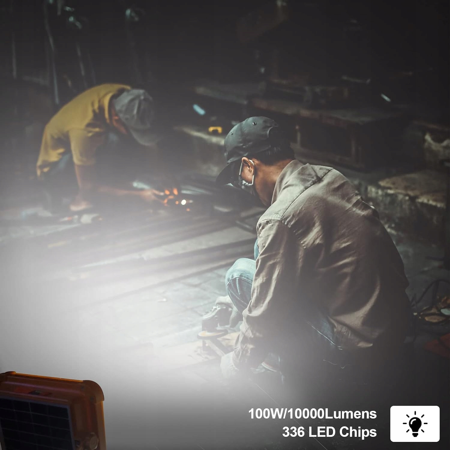 100W LED Reflektor solarny, akumulatorowy, przenośna lampa kempingowa z powerbankiem 16500mAh, 10000 lumenów na plac budowy, garaż, warsztat, na ryby, w nagłych wypadkach, garaż1