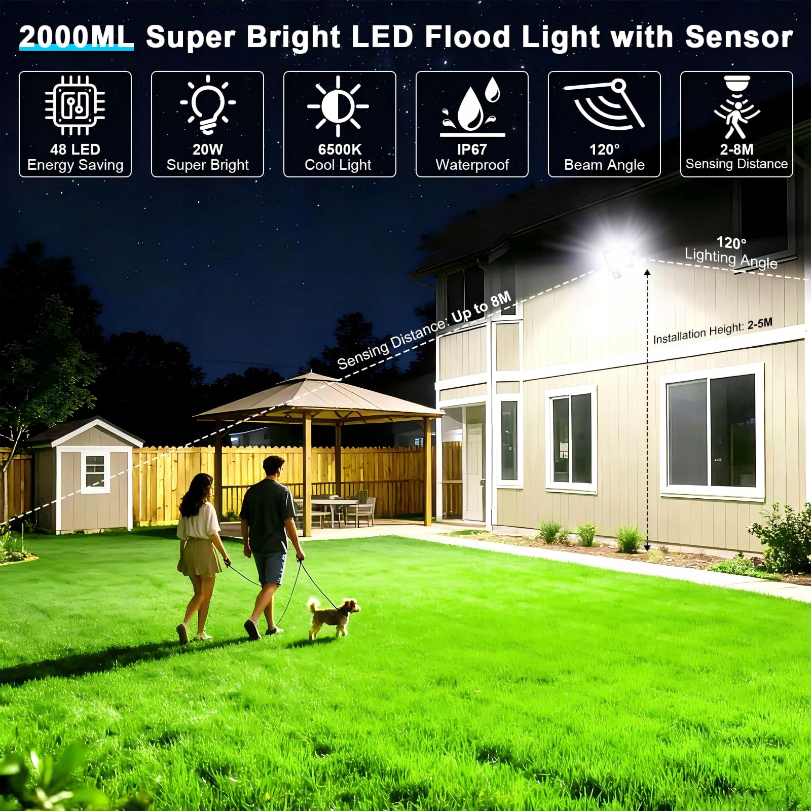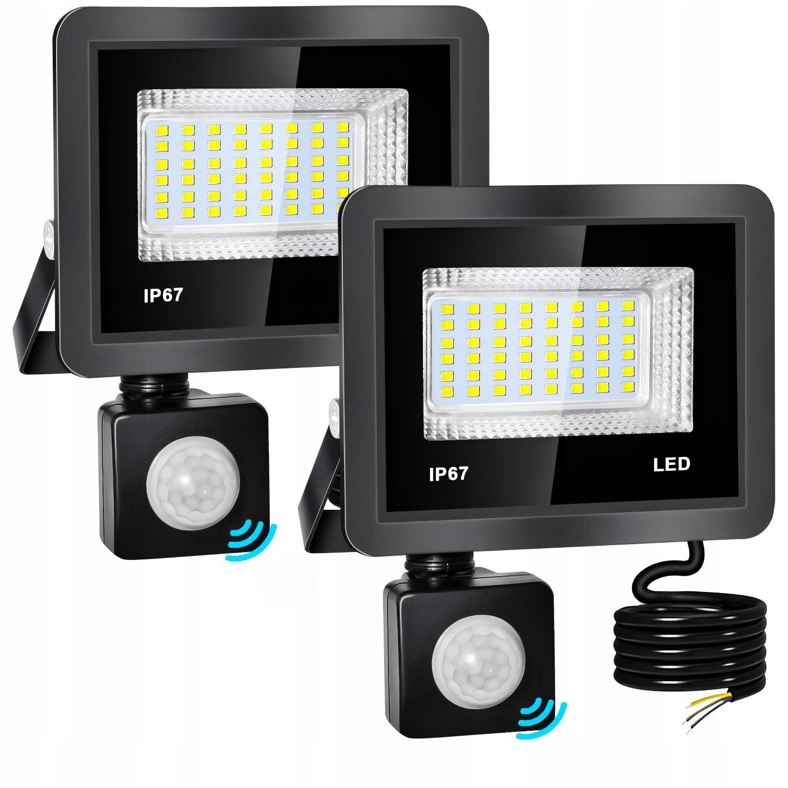 20W LED Reflektor z Czujnikiem Ruchu, 2 Sztuki, 2000LM, IP67