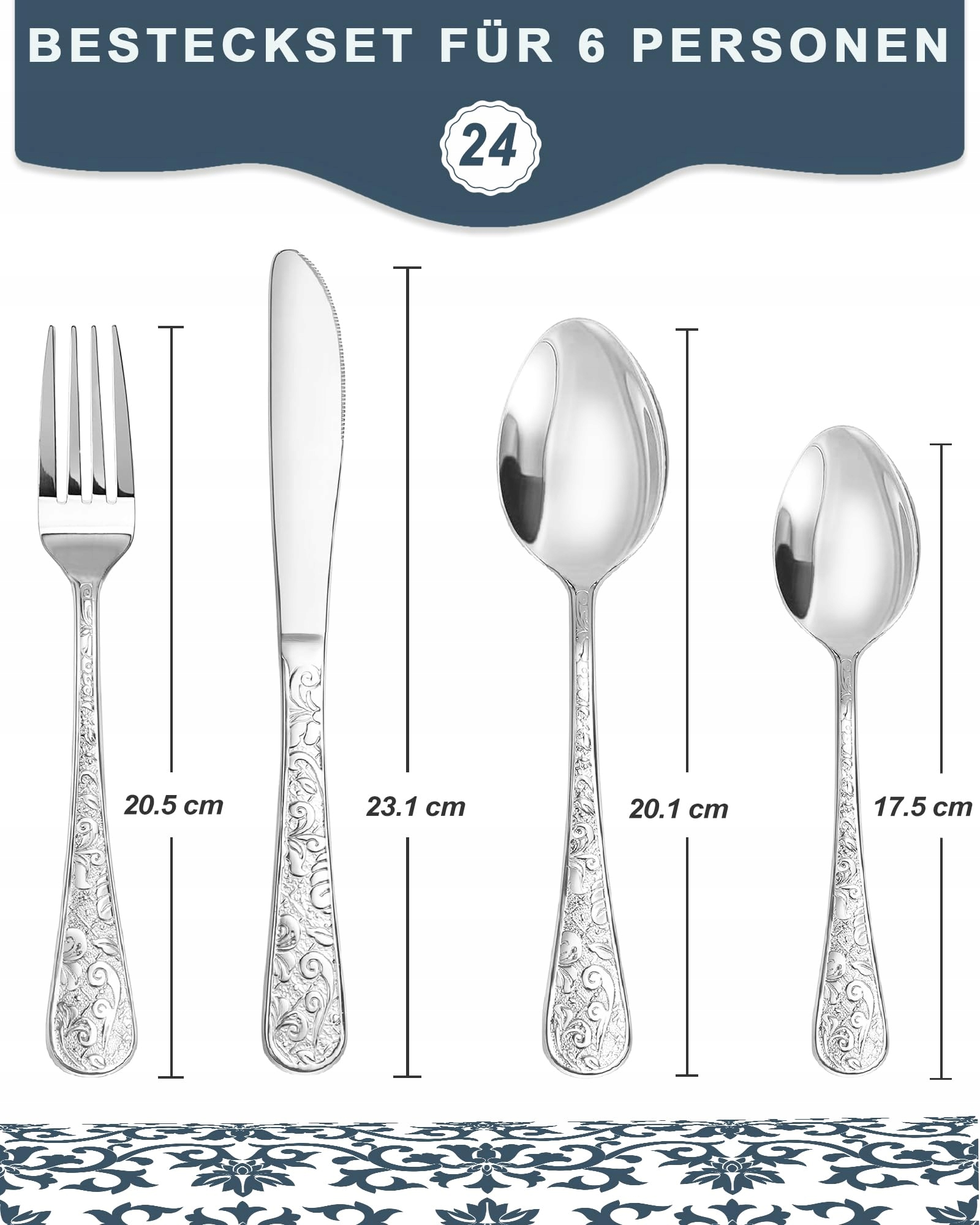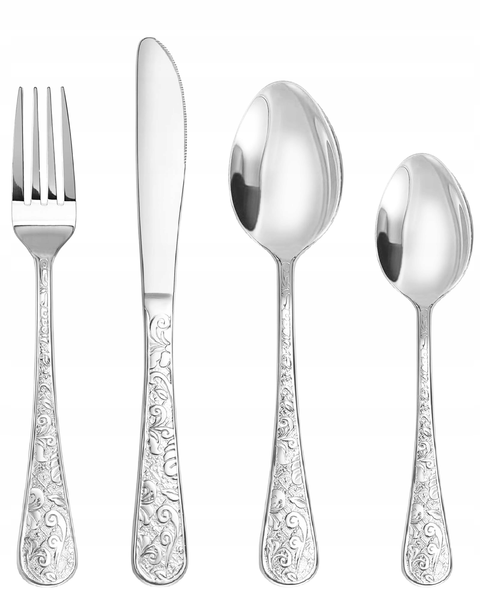 24-częściowy zestaw sztućców w srebrnym stylu vintage z rzeźbieniami Dla 6 | Premium Supply