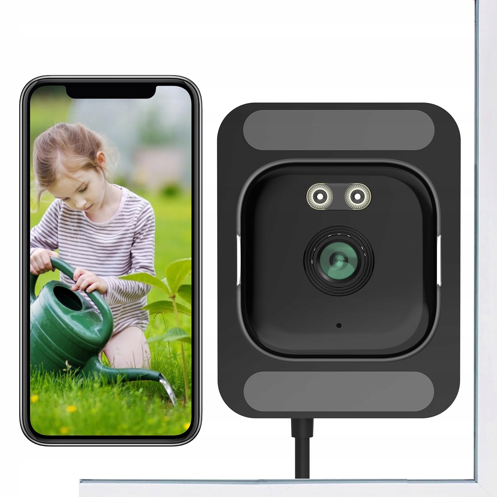 Kamera okienna 2K do bezpieczeństwa domowego, WiFi 2,4 GHz i 5 GHz Kamera dla niemowląt / zwierząt domowych z aplikacją na telefon, kamera do widoku wewnątrz / na zewnątrz z kolorowym widzeniem nocnym BlackLight, wykrywaniem ruchu AI, dwukierunkowym audio, okno