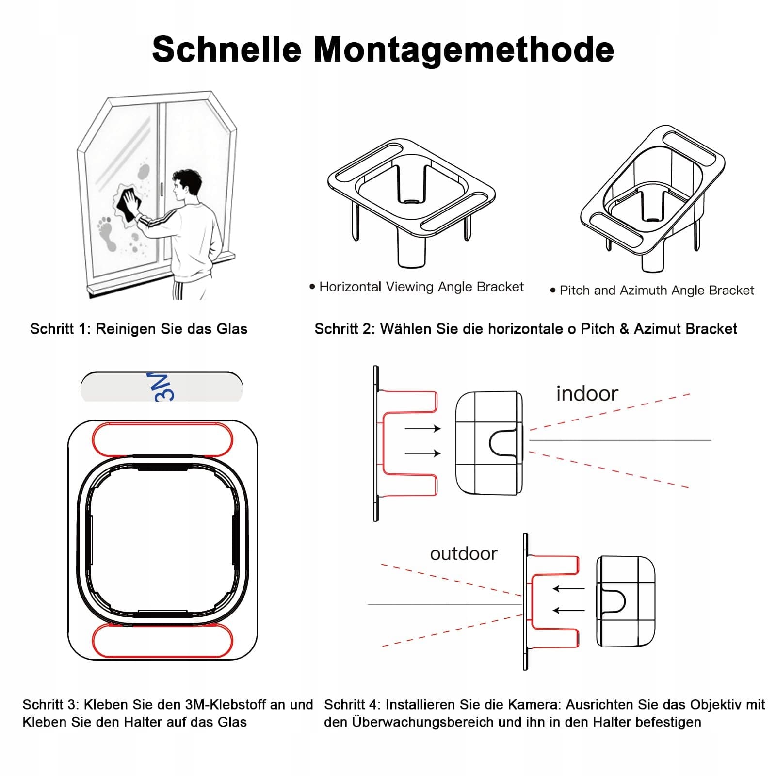 Łatwa instalacja i zdalny monitoring: Ten zestaw kamery okiennej zawiera uchwyt do widoku poziomego, wysokości i kąta azymutu, wystarczy przykleić go do szklanego okna, a następnie ustawić kamerę na uchwycie, aby zakończyć instalację. Możesz połączyć kamerę z siecią 2.4G i 5G WiFi, aby uzyskać zdalny podgląd z dowolnego miejsca i o każdej porze.