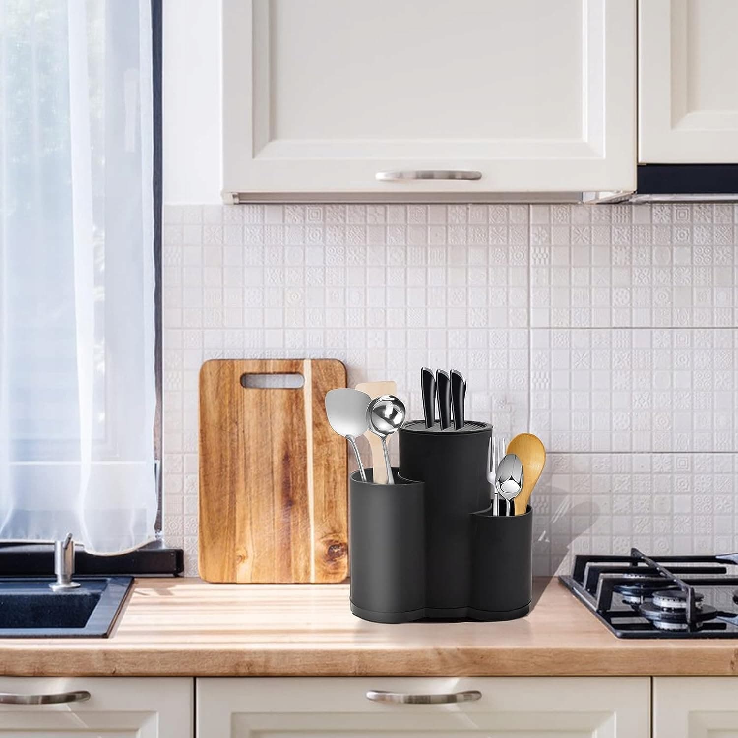 3-IN Blok Na Noże Uniwersalny Okrągły Na 12 Noży z Miejscem na Przybory | Premium Supply