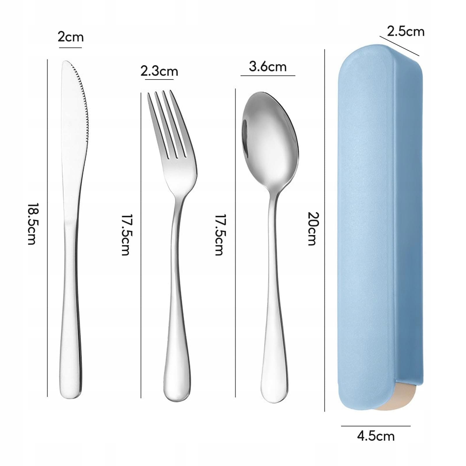 3 ZESTAWY STALOWE SZTUĆCE TURYSTYCZNE Z ETUI SZKOŁA BIURO 3 KOLORY | Premium Supply