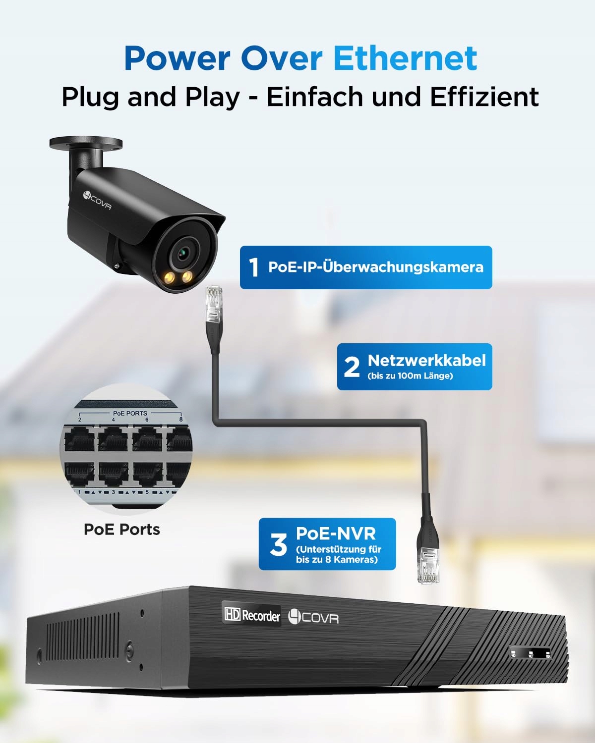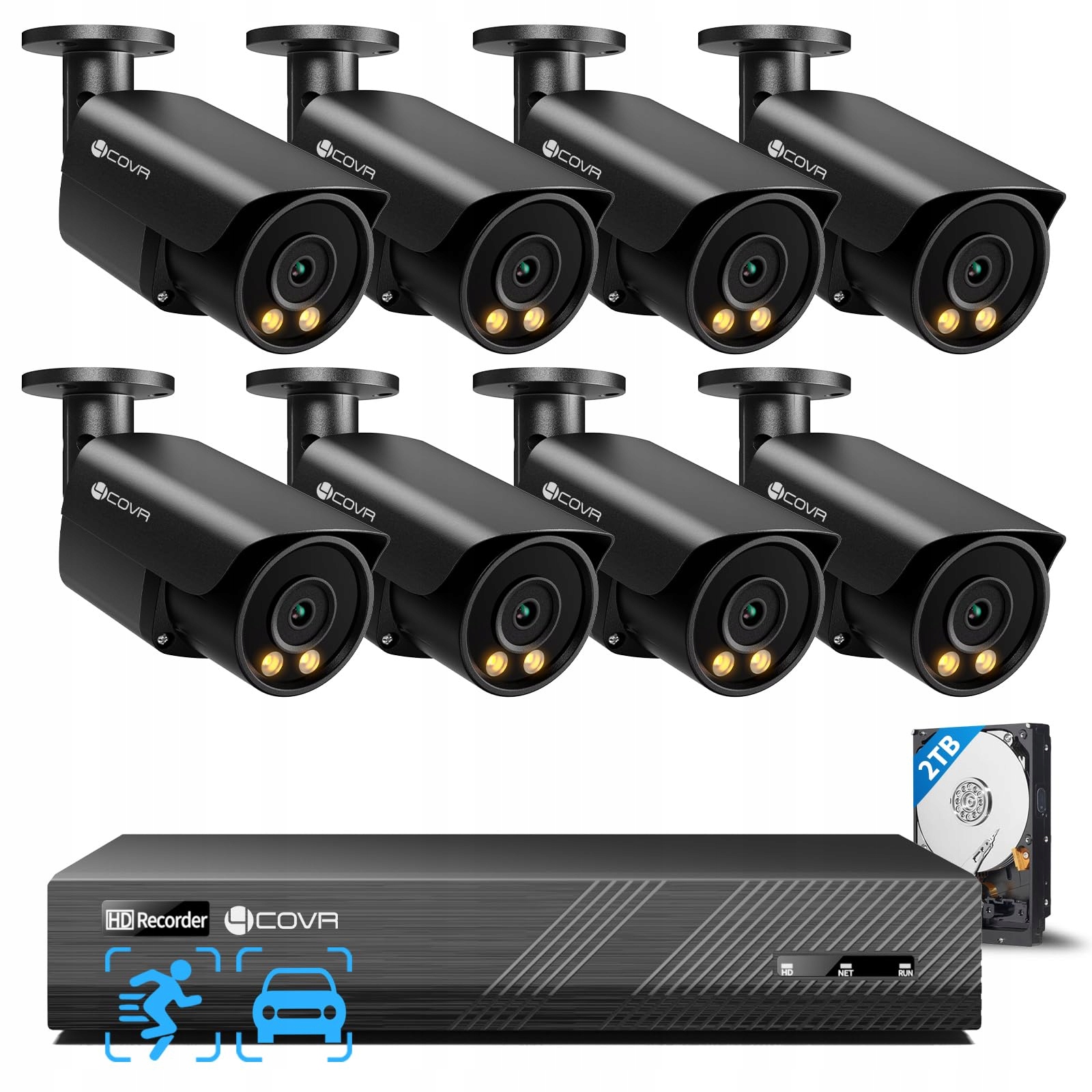 4COVR Zestaw kamer monitoringu zewnętrznego, system kamer 4K z 8-kanałowym PoE NVR 2TB, 8x 8MP kamera IP Bullet IP67 na zewnątrz, dwukierunkowe audio i kolorowy tryb nocny, inteligentne wykrywanie osób/pojazdów, DLY37YB8M0808