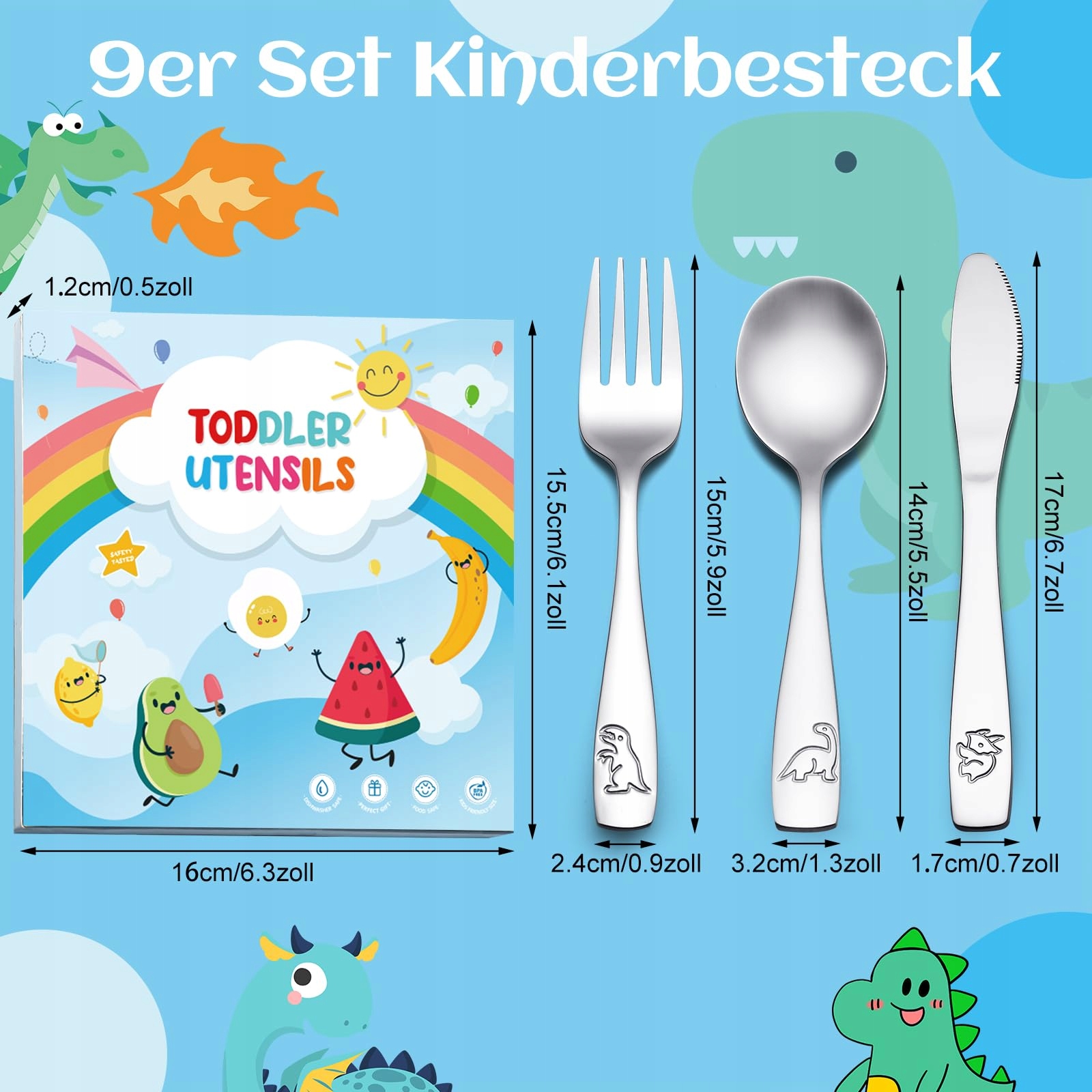 9ER ZESTAW SZTUĆCÓW DLA DZIECI STAL NIERDZEWNA DLA DZIEWCZYNEK I CHŁOPCÓW