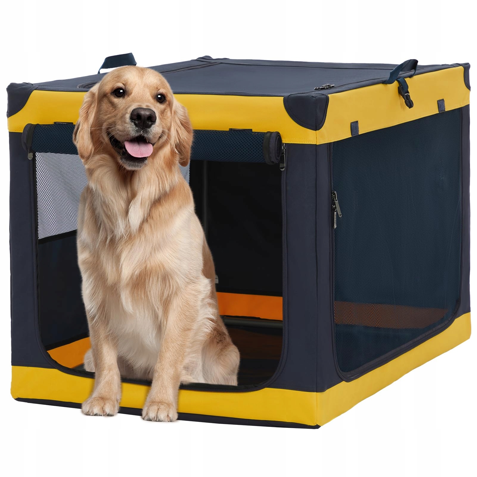A 4 Pet Hundebox składana dla dużych psów, transportowa skrzynia samochodowa, miękka przenośna skrzynia dla psa do domu, łatwa do przechowywania z zamontowaną aluminiową ramą, regulowana kompatybilność (XL, Żółty)