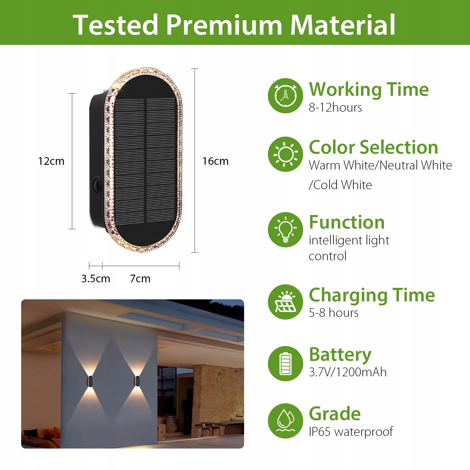 Solarne lampy na płot w 3 kolorach światła – oferują 3 tryby stałego światła (ciepła biel, neutralna biel, zimna biel). Tryb włącz/wyłącz można stosować na otwartych i wysokich murach podwórza. Zewnętrzny mur płotu podwórza sprawia, że przestrzeń wydaje się wyższa i ładniejsza. Tryb ciepłej bieli jest idealny do stworzenia romantycznej atmosfery i stanowi doskonały wybór do dekoracji tarasów i schodów przy basenie podczas imprez, festiwali, świąt, Bożego Narodzenia i Sylwestra.