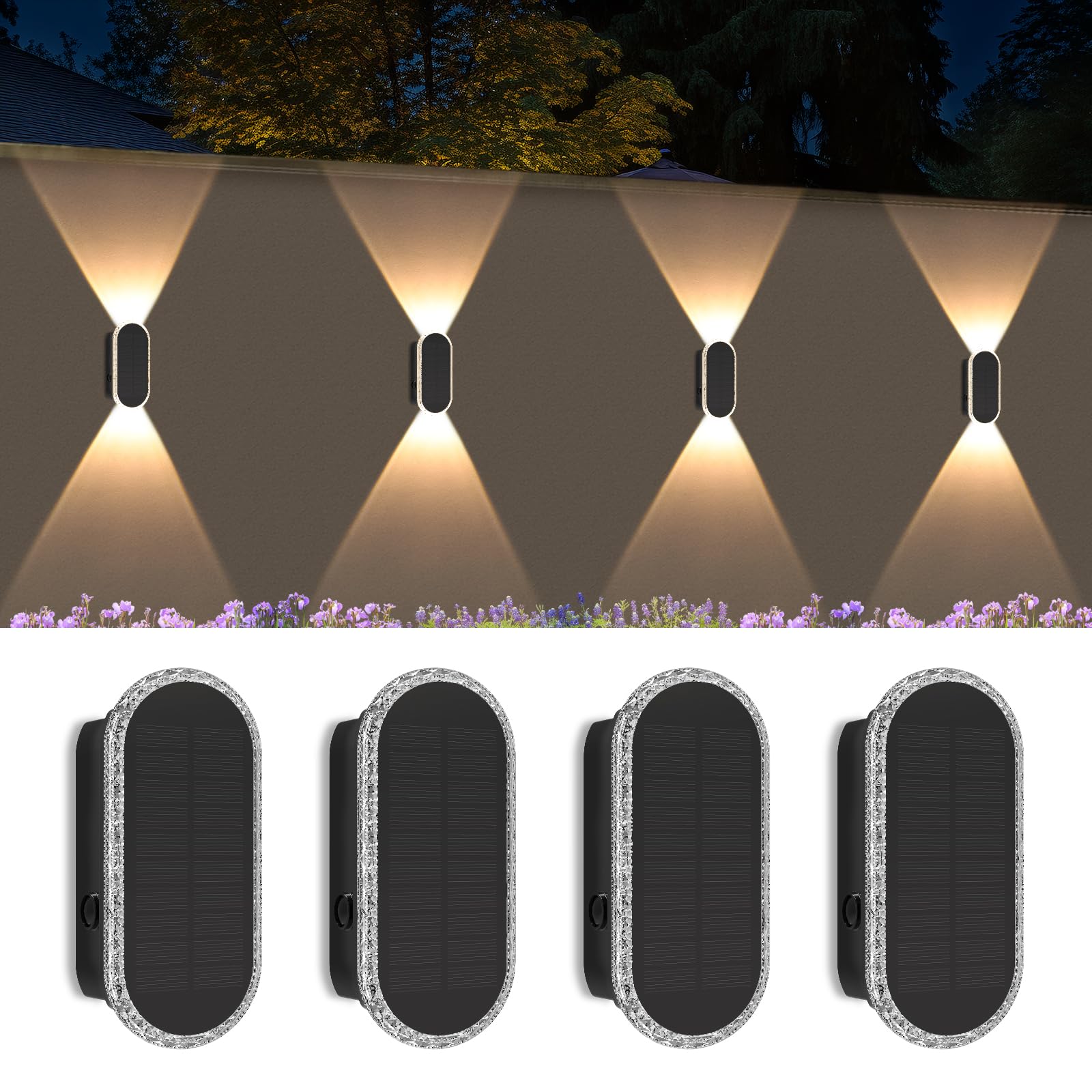 A.bigwhale Lampy solarne na zewnątrz, solarne kinkiety zewnętrzne, 4 sztuki lamp ogrodowych LED, oświetlenie, wodoodporna lampa solarna na płot, ścianę, taras, ogród, balkon dekoracja