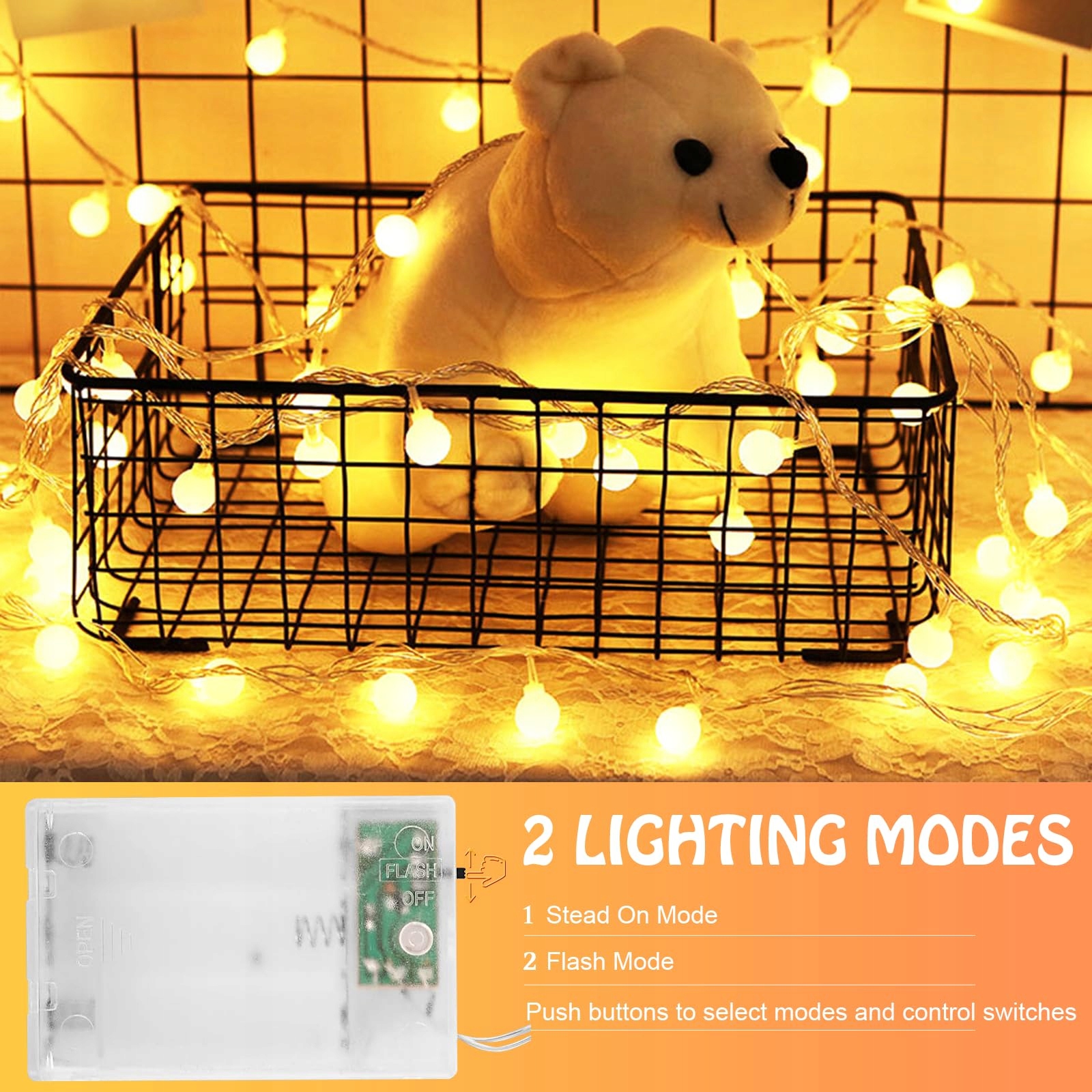 Ciepłe białe łańcuchy świetlne z kulkami – Można je łatwo przymocować lub powiesić na stołach, krzesłach, ścianach, oknach, drzwiach, podłogach, drzewach, balkonach, tarasach, kempingach itp. Idealny wybór, aby stworzyć ciepłą i przyjemną atmosferę, w której możesz cieszyć się szczęśliwymi chwilami na swojej imprezie i w gronie rodziny.