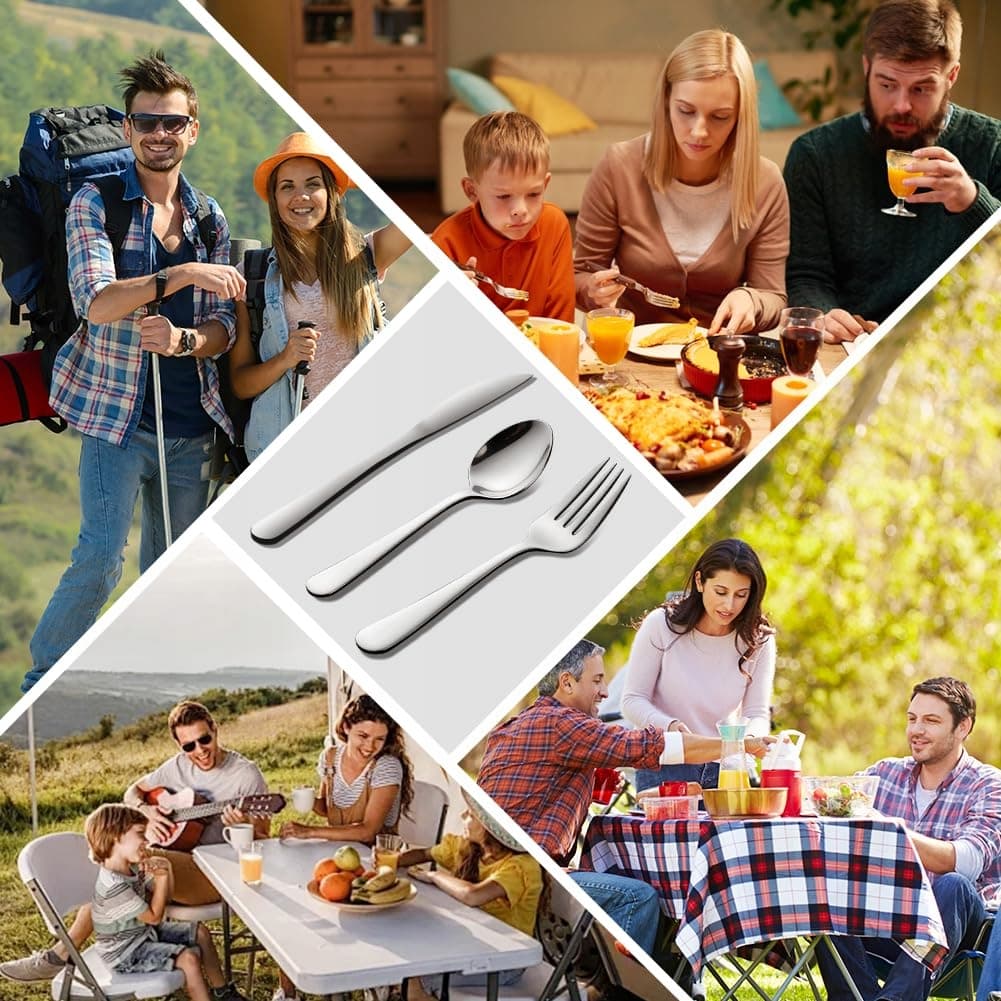 【Wszechstronny na każdą okazję】 Ten zestaw doskonale nadaje się jako sztućce podróżne i można go bez wysiłku używać od pikników po przyjęcia obiadowe. Zestaw sztućców ze stali nierdzewnej świetnie sprawdza się na grillach w ogrodzie, rodzinnych uroczystościach czy bankietach, a kompaktowe etui zapewnia, że jest zawsze pod ręką