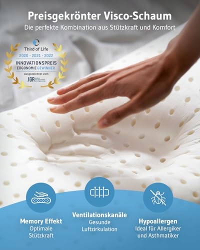 ➥ ORTOPEDYCZNA I ERGONOMICZNA – Poduszka podtrzymująca szyję z nagradzaną pianką visco oferuje optymalne wsparcie dla szyi i kręgosłupa szyjnego (HWS). Pianka memory odciążająca skutecznie zapobiega bólom szyi i napięciom.