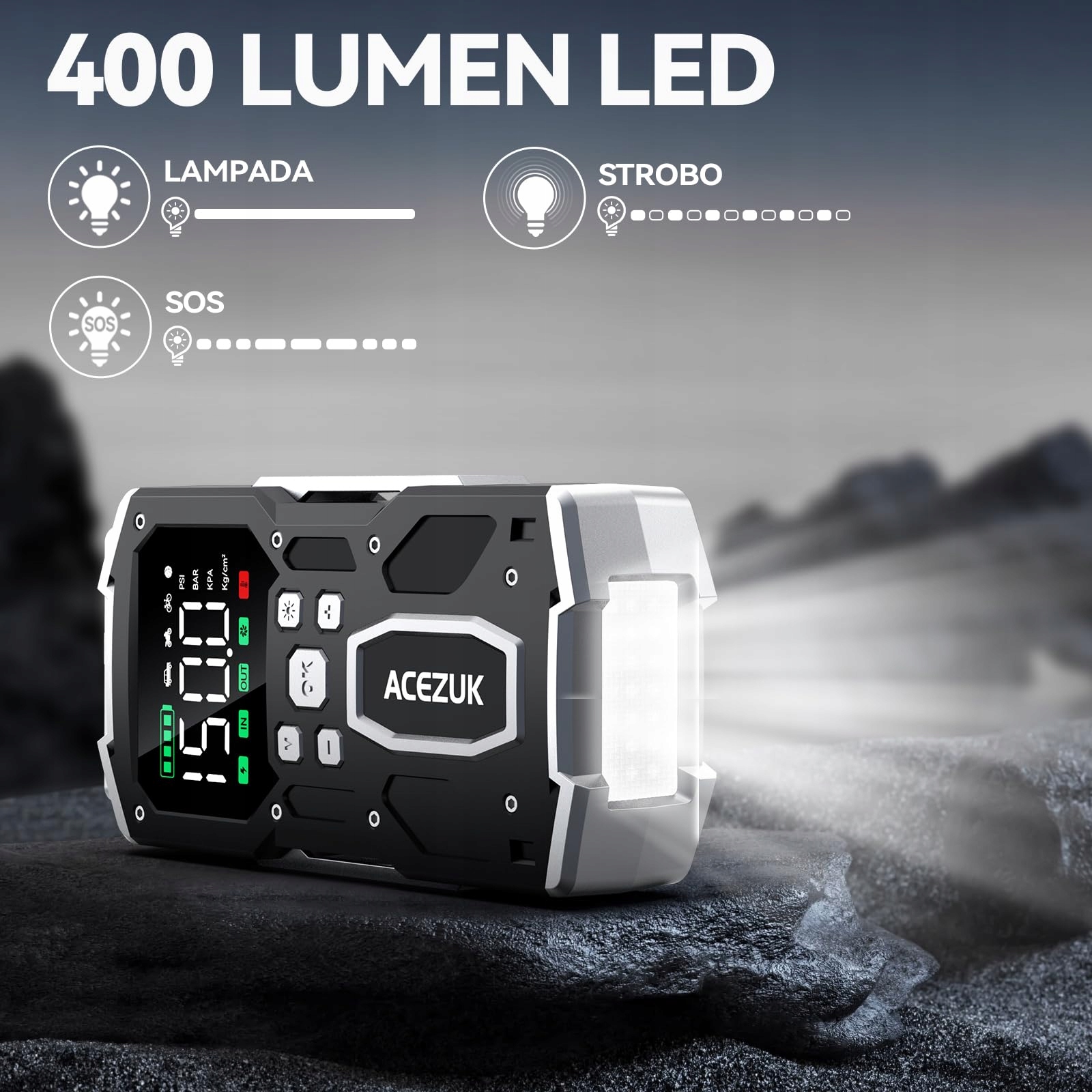 ACEZUK Autobateria-Pomoc przy rozruchu, 8000A & 150PSI Auto-rozrusznik z przenośnym kompresorem powietrza (do wszystkich benzynowych lub 10,0L Diesli) 12V Jump Start, 2 lampy/ 3,4'' wyświetlacz LCD
