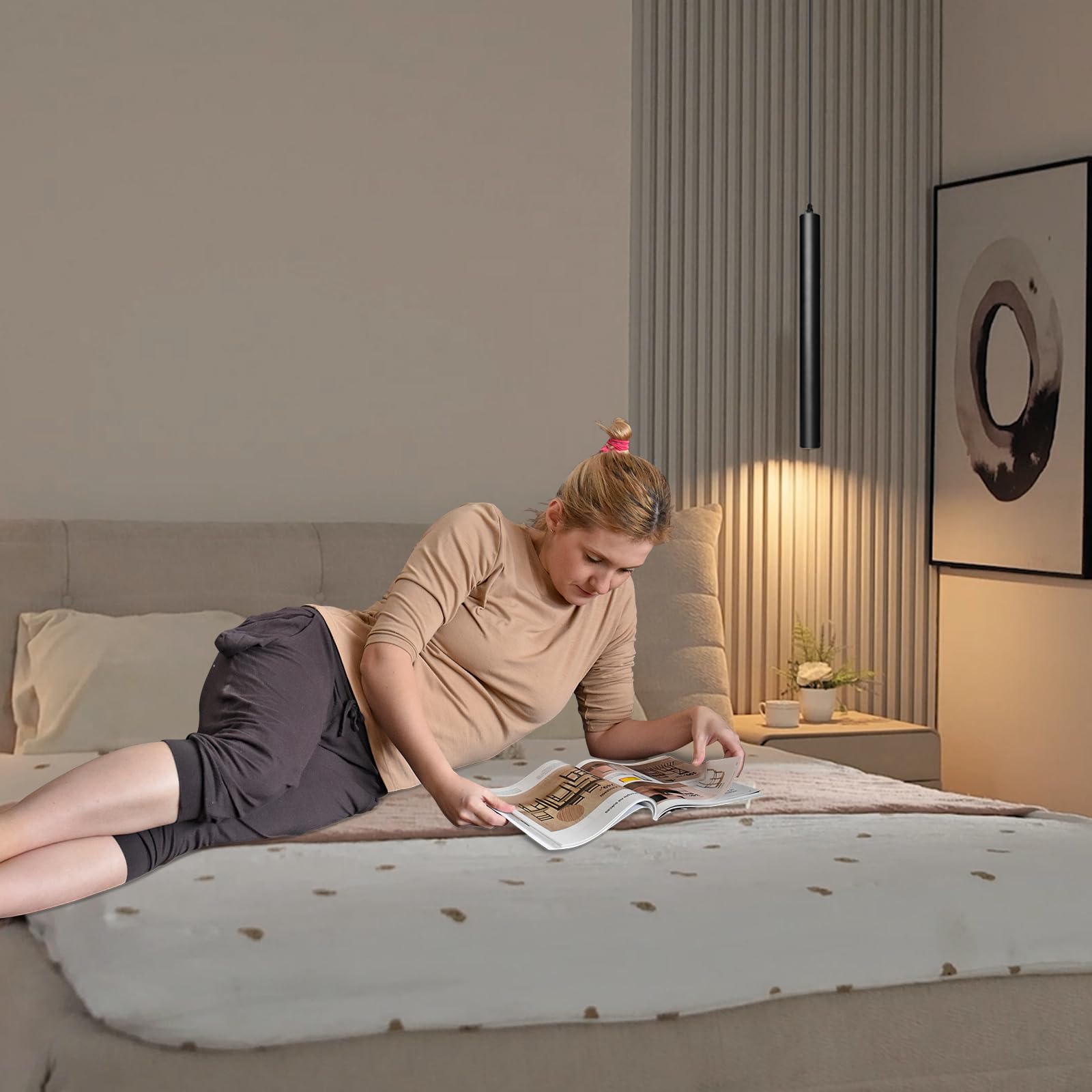 Ponadczasowy design cylindrycznej lampy nocnej: Nowoczesna LED mała lampa wisząca Czarna w stylu skandynawskim. Minimalistyczna forma doskonale wpasowuje się w Twoje otoczenie i zapewnia przyjemne ciepłe światło skierowane w dół, które podkreśla wybrane elementy