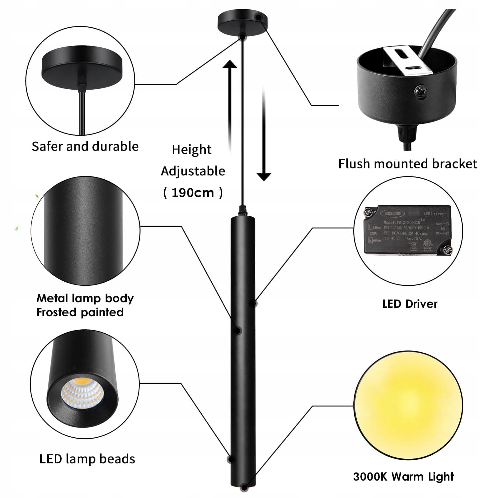 Rozmiar: 30*3cm. Kabel zawieszenia: 100cm (regulowany), moc: 3W (Ciepła biel 3000K). Nowe źródło światła LED, ochrona oczu, wysoka jasność. Prosta i stylowa. Gdziekolwiek zainstalujesz światło, ciesz się relaksującą i elegancką atmosferą, którą tworzy