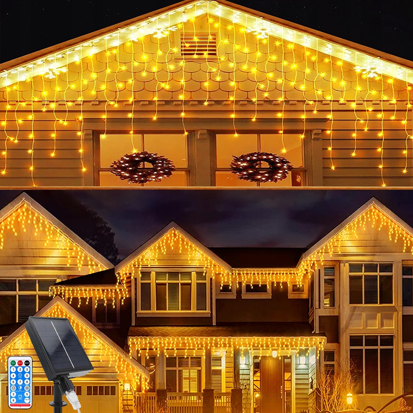 Acxilexy Solarne Światełka Sople, 8 M 264 LED Kurtyna Świetlna z 8 Trybami, Zdalnie Sterowane Światełka Sople, IP65 Wodoodporna Kurtyna Świetlna na Boże Narodzenie, Balkon, Ogród