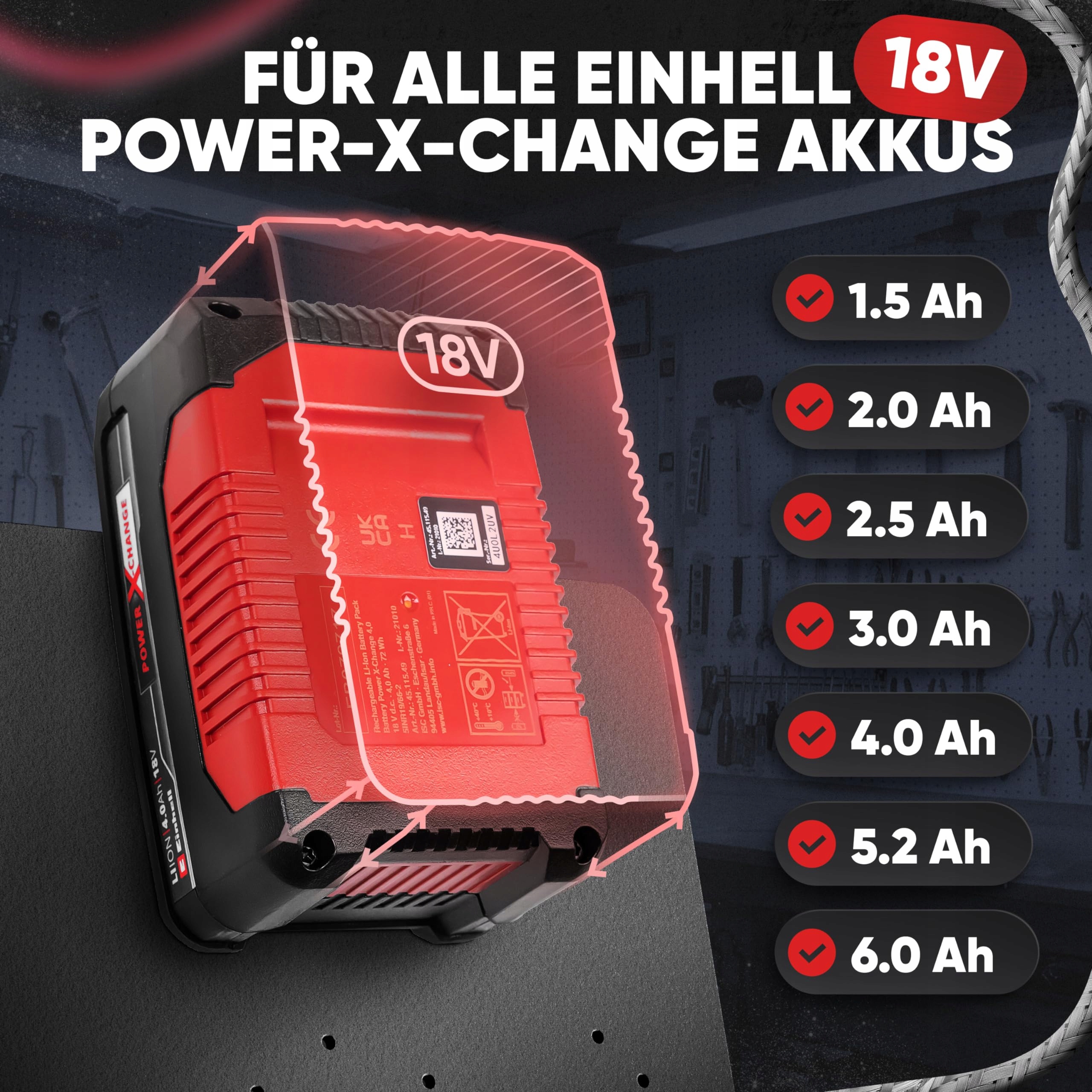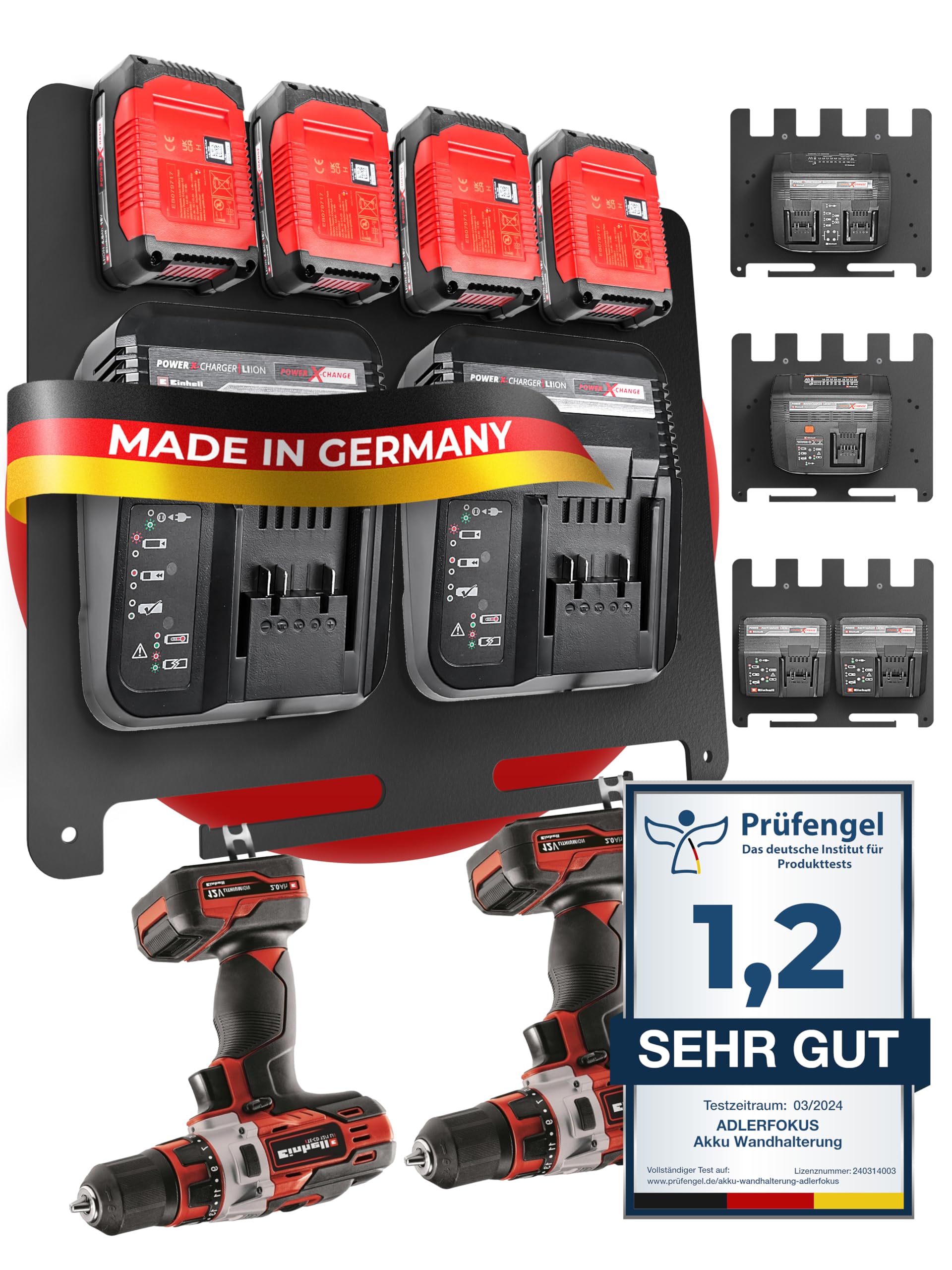 Uchwyt ścienny Adlerfokus dla akumulatorów i ładowarek Einhell [Wyprodukowano w Niemczech] Uchwyt akumulatora Einhell z materiałami montażowymi premium - Uchwyt akumulatora Einhell 18V - Uchwyt akumulatora Einhell na ścianę