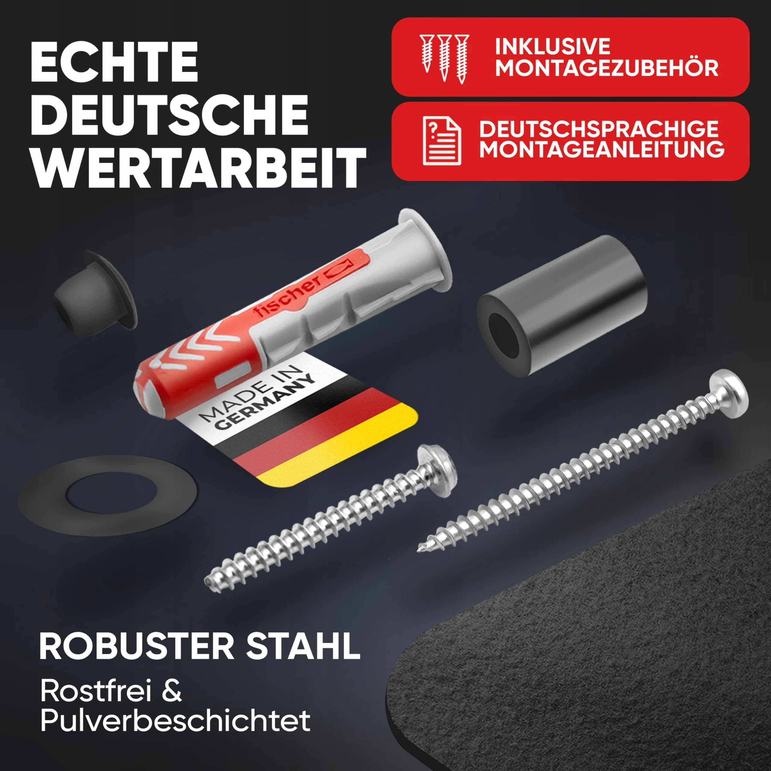 NIEMIECKA JAKOŚĆ RĘCZNA - Uchwyt ścienny dla ładowarek i akumulatorów Einhell jest produkowany zgodnie z wysokimi standardami jakości w Niemczech.