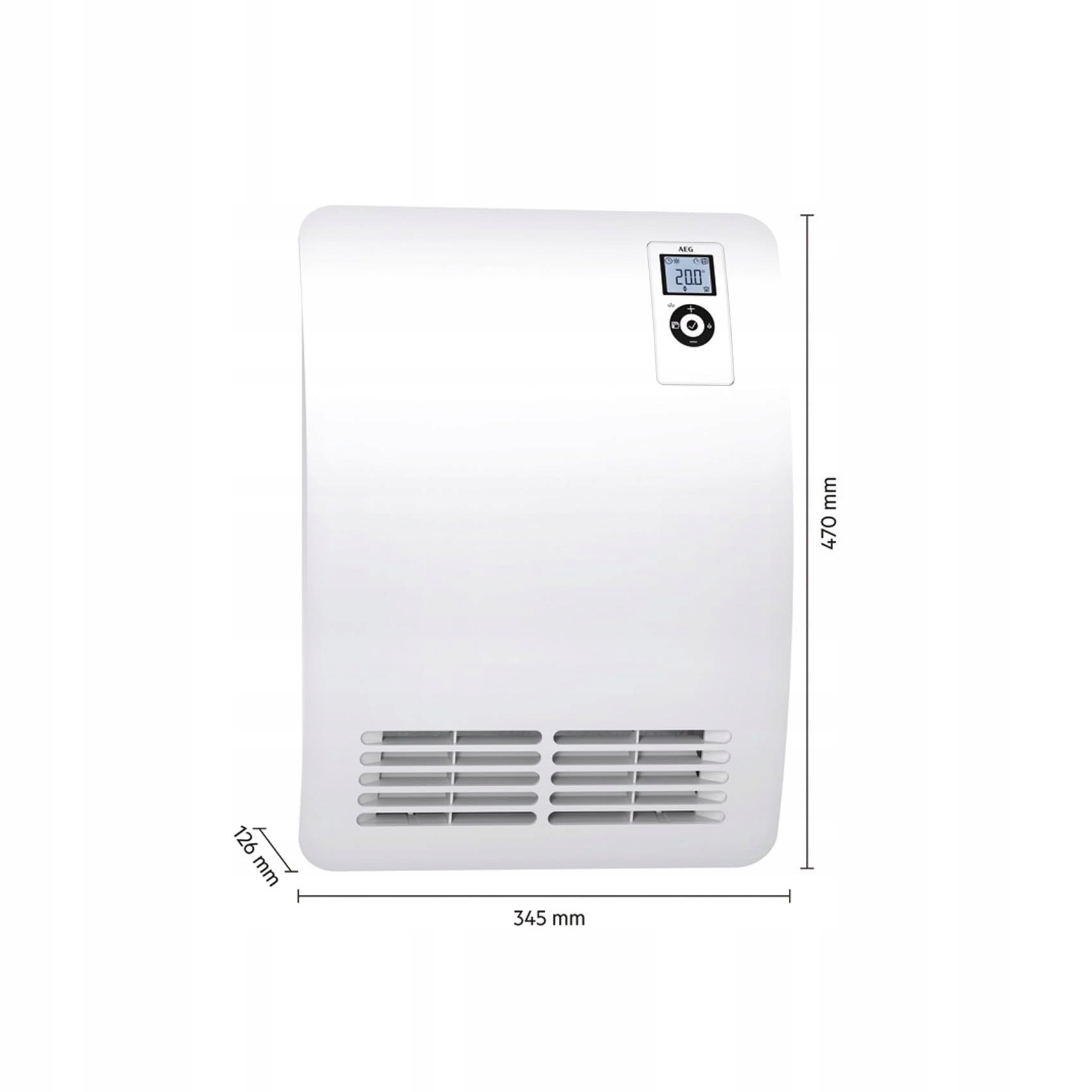 AEG VH Comfort, energooszczędny termowentylator, 2000 W na ok. 25 m², wyświetlacz LCD, tygodniowy programator czasowy, 120 min. timer, tryb cichy, łazienka, (wtyczka EU) 238722