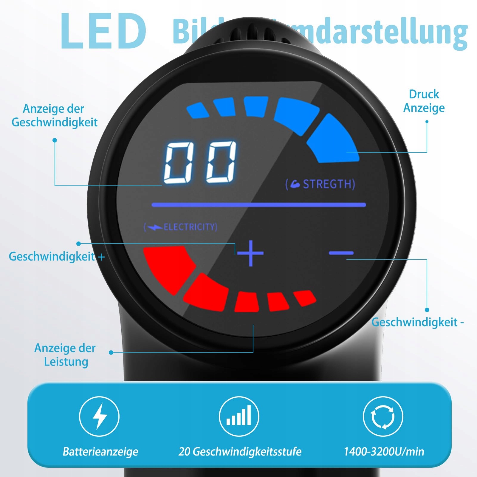 【Mocne urządzenie do masażu】: Nasz pistolet do masażu AERLANG z funkcją podgrzewania oferuje mocne i skuteczne doświadczenie masażu. Z maksymalną prędkością 3200 obrotów na minutę i amplitudą 8 mm, pistolet do masażu ma również wyświetlacz LED, który w czasie rzeczywistym pokazuje prędkość, intensywność nacisku i stan baterii, dzięki czemu łatwo można dostosować ustawienia do komfortowego i bezproblemowego doświadczenia masażu