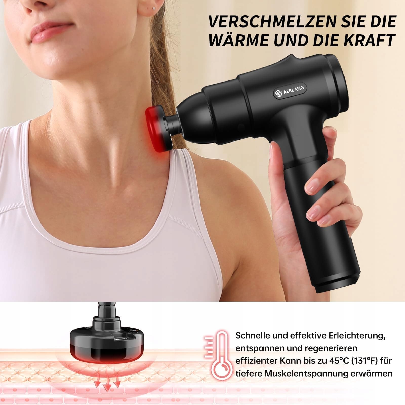 AERLANG Pistolet Do Masażu Z Funkcją Ciepła 20 Poziomów 7 Główki LED