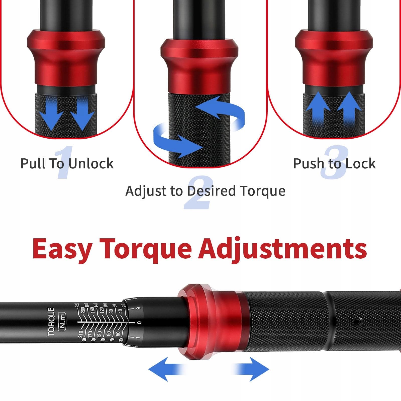 【Wygodne użytkowanie】 Klucz dynamometryczny 1/2 cala posiada szybko zwalniający, odwracalny mechanizm, który umożliwia łatwe wkładanie i wyjmowanie nasadki oraz zapobiega jej upadkowi. Skala pomiarowa wykorzystuje technologię laserową dla wysokiego kontrastu i jest łatwa do odczytania nawet w słabych warunkach oświetleniowych oraz odporna na zużycie.