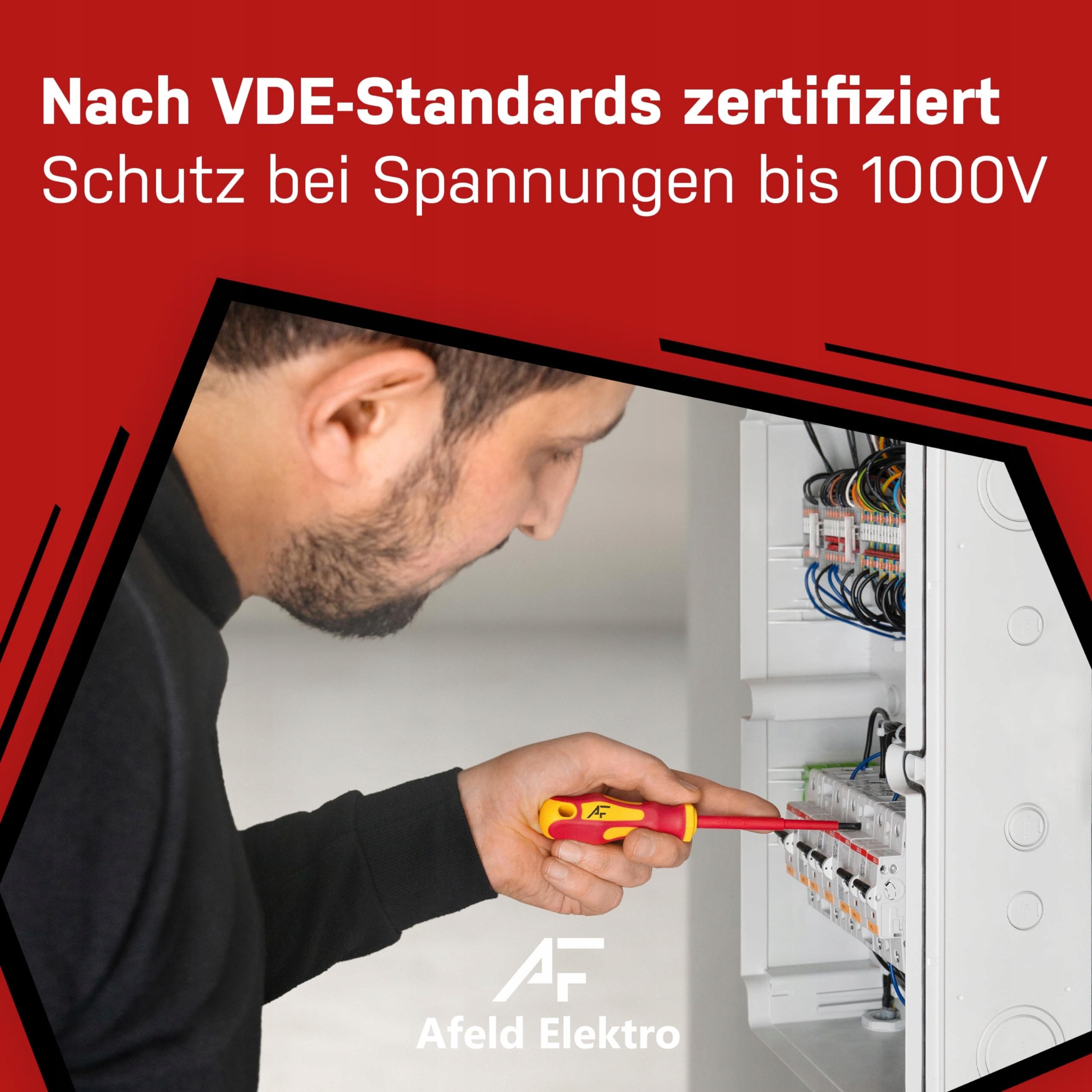 Certyfikacja VDE dla bezpieczeństwa elektrycznego: Każdy wkrętak w tym zestawie jest certyfikowany zgodnie z normami VDE i zapewnia ochronę podczas pracy z napięciami do 1.000 Voltów.