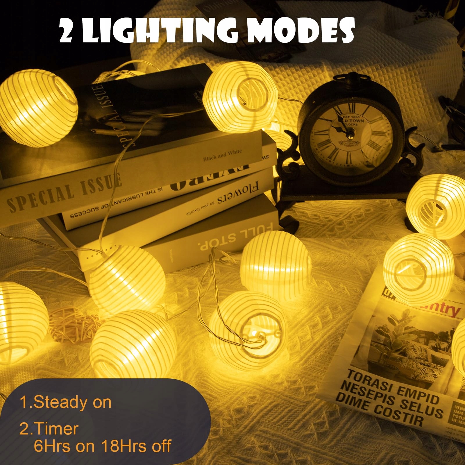 Zasilana Bateriami: Lampion-Lichterkette do użytku zewnętrznego jest zasilana 3 bateriami AA (nie dołączone do zestawu), nie musisz szukać gniazdka, jest łatwa do przenoszenia i używania, i można ją umieścić wszędzie tam, gdzie chcesz ją udekorować.