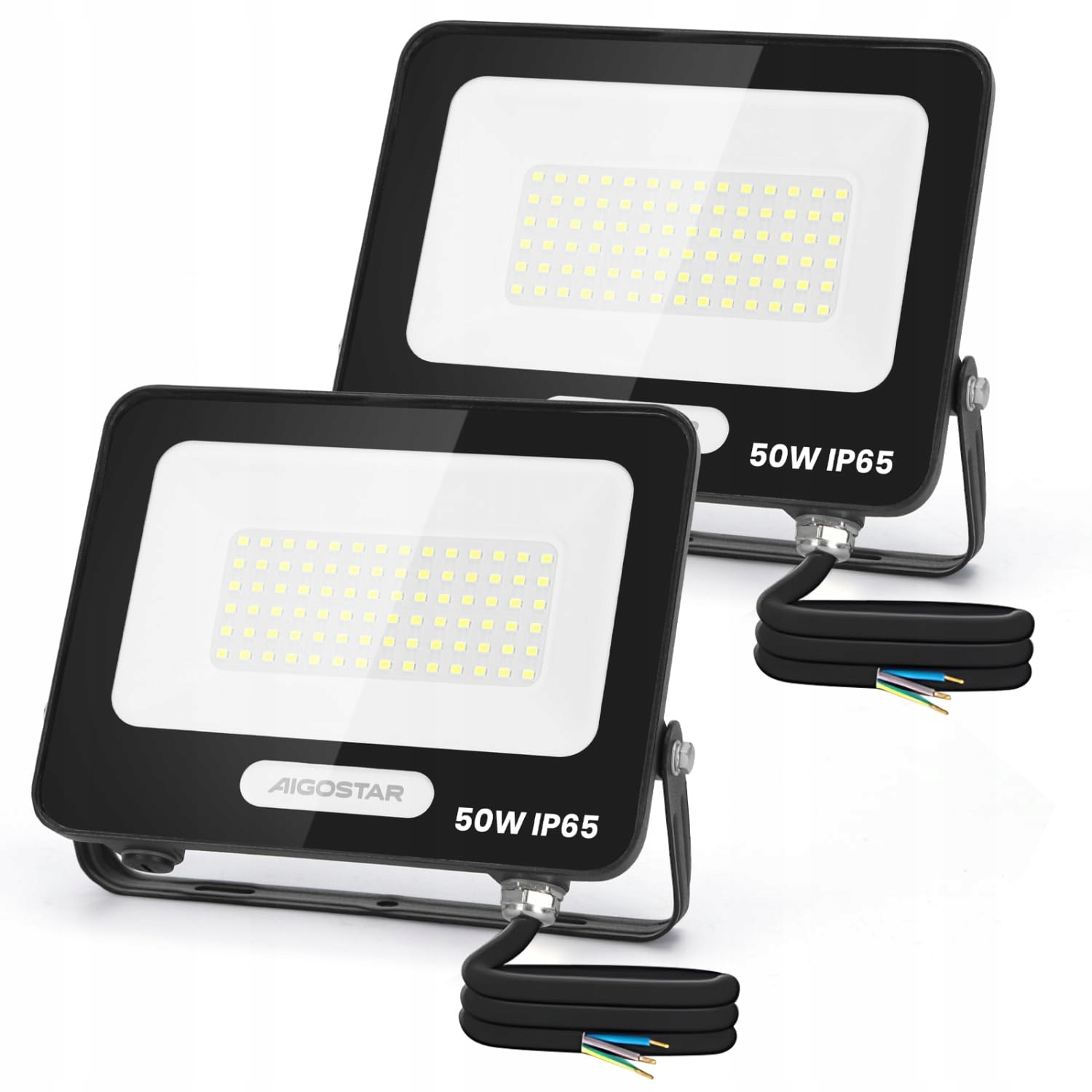 Aigostar LED Reflektor na zewnątrz i do wewnątrz 50W 4500LM Zimna biel 6500K Reflektor IP65 Wodoodporny LED Reflektor zewnętrzny do jasnego ogrodu, garażu, boiska, podwórka. 2 sztuki
