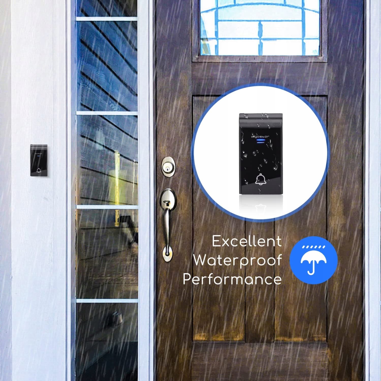 Niebieski wskaźnik LED: Przycisk nadajnika miga na niebiesko, aby przyjaźnie przywitać gościa. Idealny również dla osób niedosłyszących.