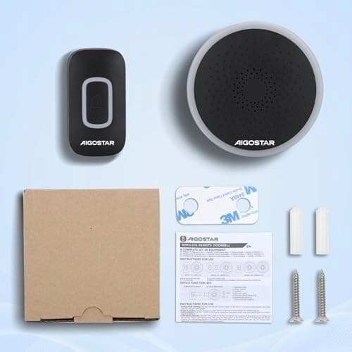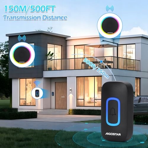 Aigostar dzwonek bezprzewodowy z RGB światłem, dzwonek bezprzewodowy IP55 wodoodporny do użytku zewnętrznego, zestaw dzwonka do drzwi, 5 poziomów głośności, 60 melodii, zasięg 150m, 1 przycisk dzwonka i 1 odbiornik, czarny