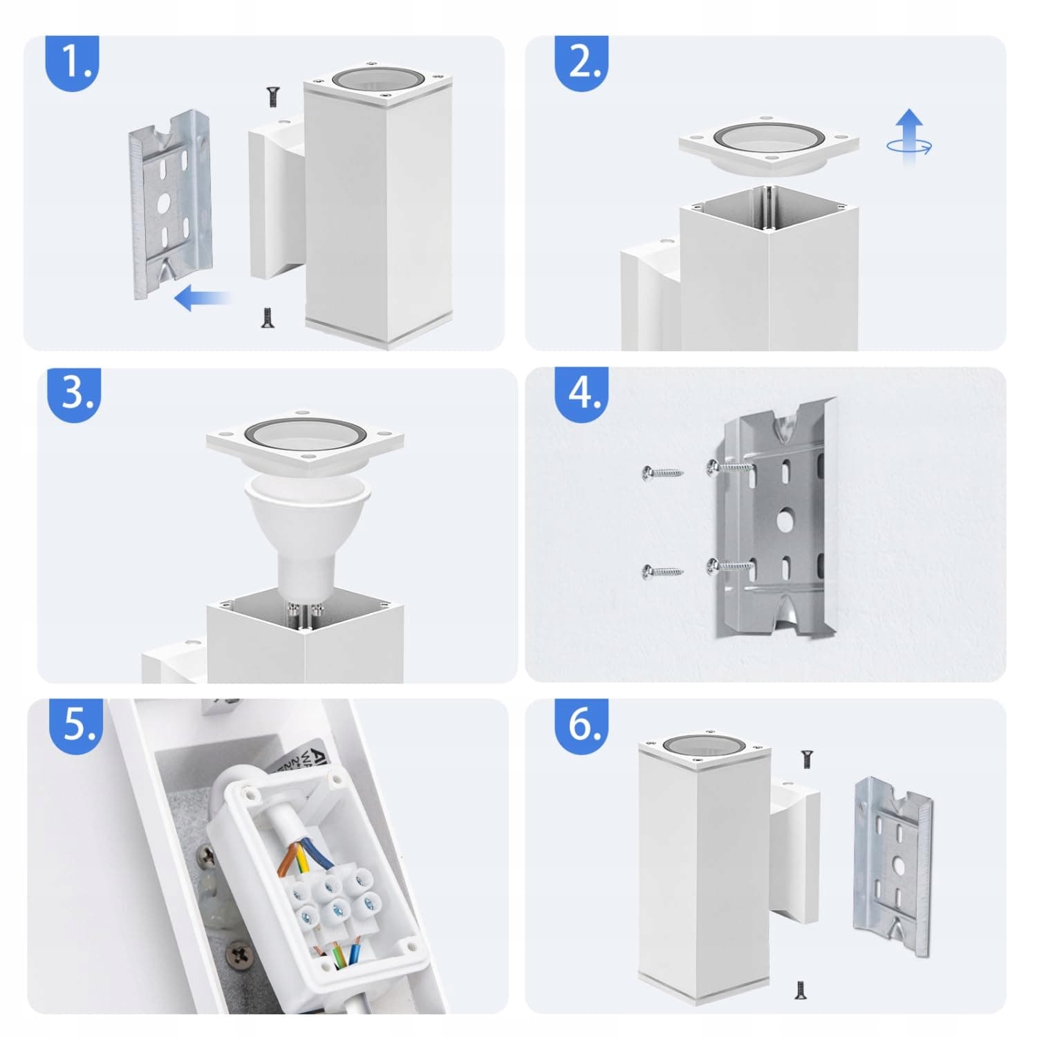 【Łatwa instalacja】 Najpierw wyłącz zasilanie i usuń śruby. Następnie przymocuj oprawę lampy do ściany. Następnie wyłącz zasilanie i podłącz przewody, zainstaluj lampę Gu10 i korpus lampy, a następnie dokręć śruby.
