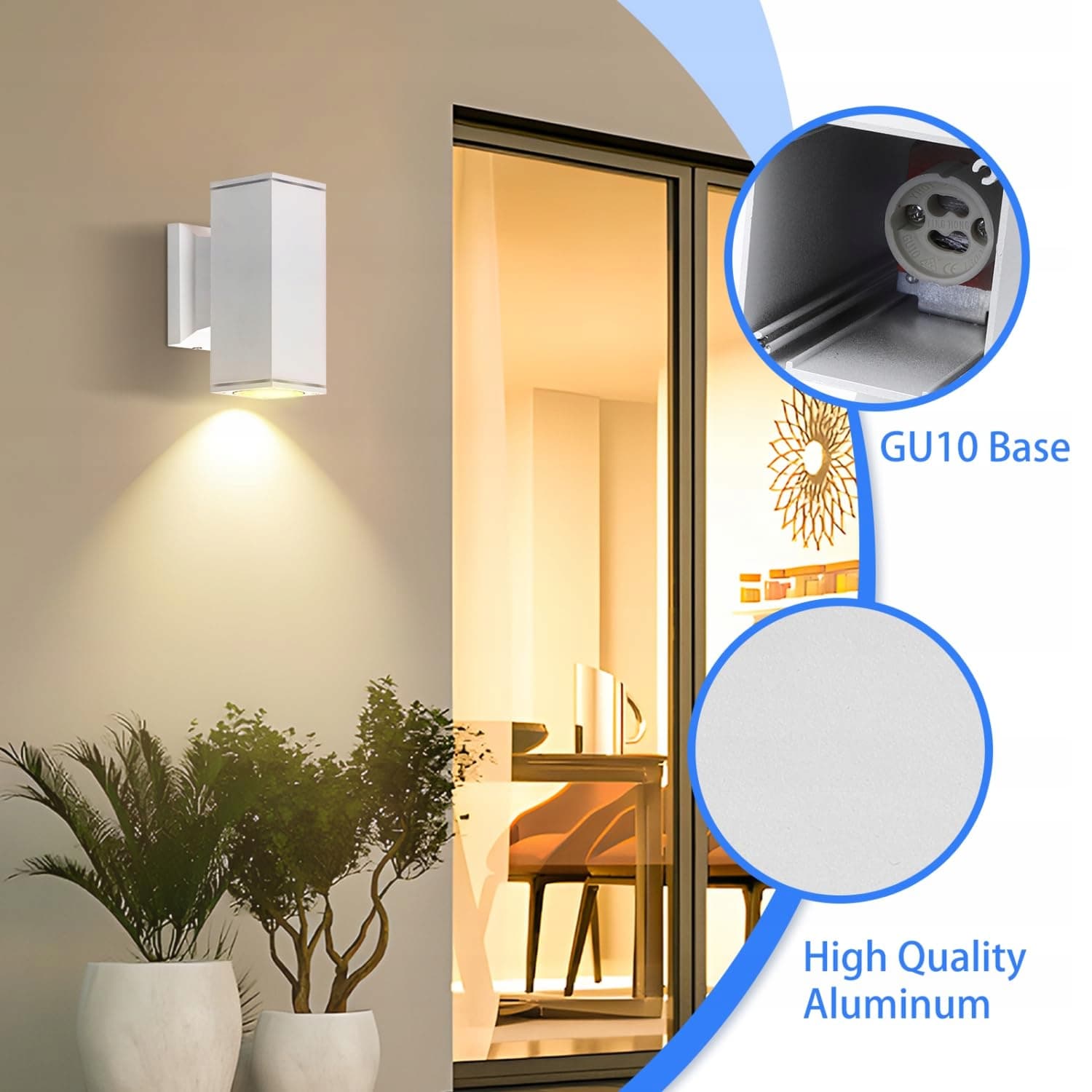 Aigostar LED kinkiet GU10 aluminium lampa ścienna zewnętrzna wodoodporna lampa zewnętrzna kinkiet do wnętrz i na zewnątrz, biały