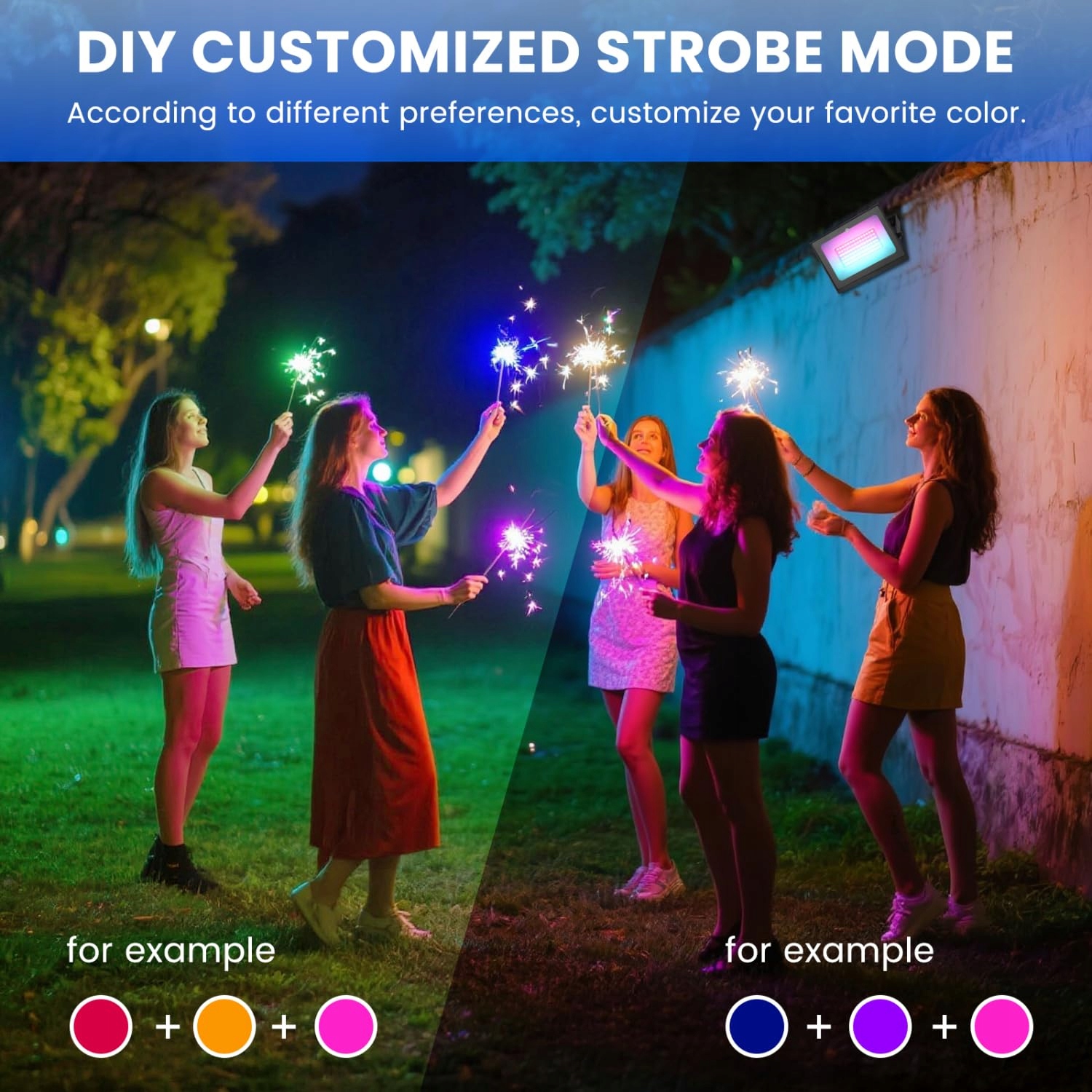 【Tryb DIY i 6 trybów stroboskopowych】To w pełni kolorowy reflektor LED z funkcją pilota. Reflektor RGB oferuje 20 różnych kolorów i 6 trybów (Auto, Flash, Fade3, Fade7, Jump3, Jump7). Obsługuje także tryb DIY oraz regulację prędkości stroboskopu. Możesz samodzielnie tworzyć kolorowe efekty stroboskopowe na imprezie itp. Pozwól sobie robić, co chcesz, kiedy chcesz.