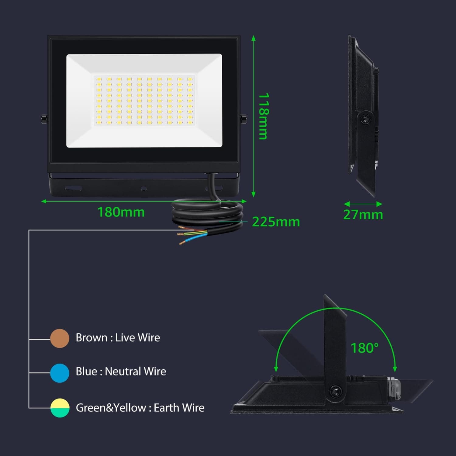 Ultra jasność i energooszczędność – ten zewnętrzny reflektor LED Aigostar wykorzystuje wysokiej jakości chip LED oraz najnowszą technologię montażu, aby zapewnić jaśniejsze oświetlenie (50W) o mocy do 4500 lumenów. Może zastąpić tradycyjną żarówkę 450W i zaoszczędzić ponad 85% energii na rachunku za prąd.