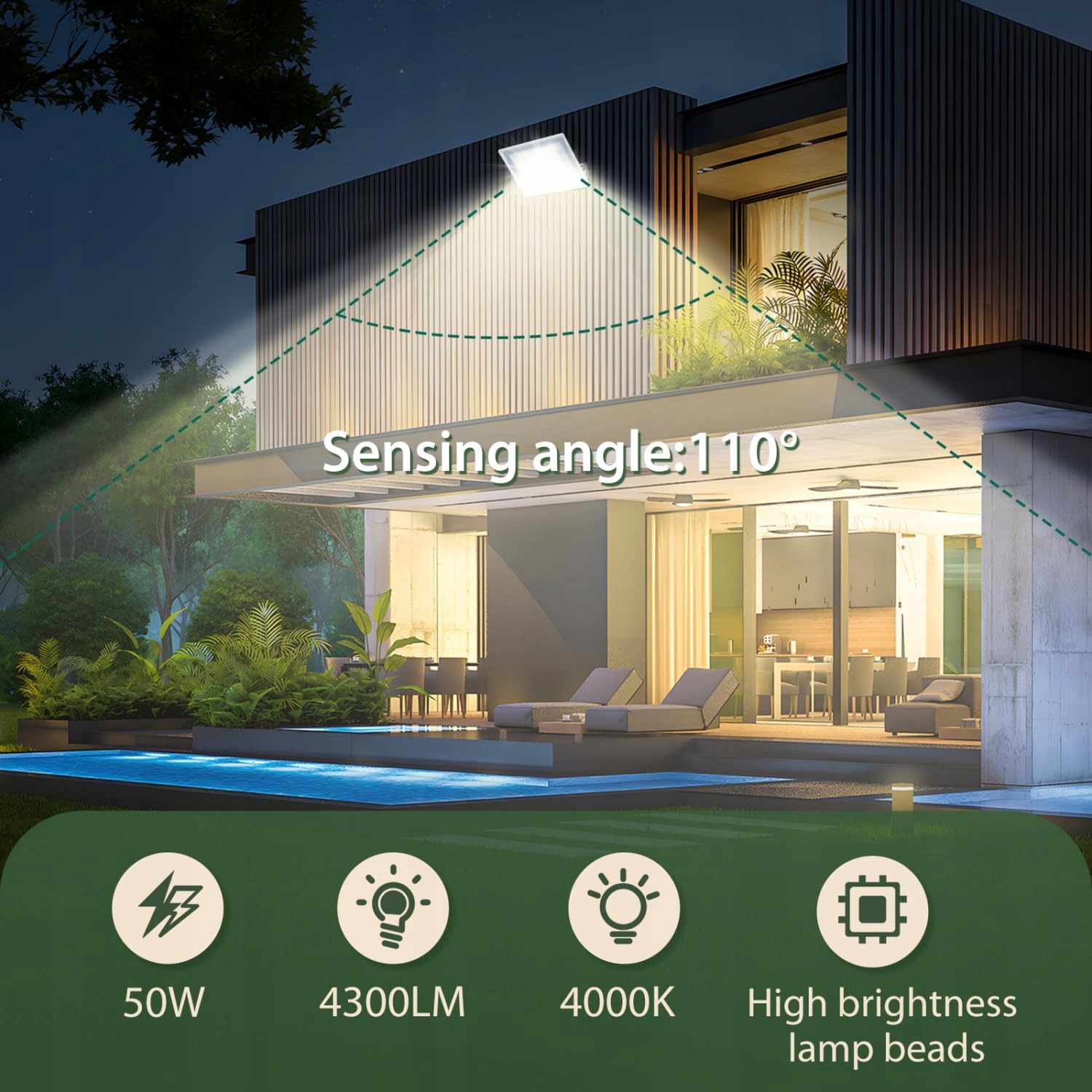 【Bezpieczny i trwały materiał】LED reflektory zewnętrzne wykonane są z wysokiej jakości stopu aluminium oraz soczewki ze szkła hartowanego, które są odporne na ciepło, korozję i uderzenia. Kąt świecenia 110° oświetla większy obszar.