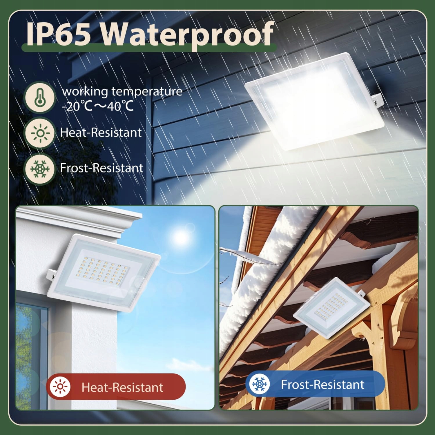 【IP65 wodoodporny i pyłoszczelny】Wodoodporność LED reflektora zewnętrznego to IP65, odpowiednia do środowiska zewnętrznego. Niezależnie od deszczu, śniegu, światła słonecznego, wiatru, upału czy zimna, zapewnia normalne działanie reflektora.