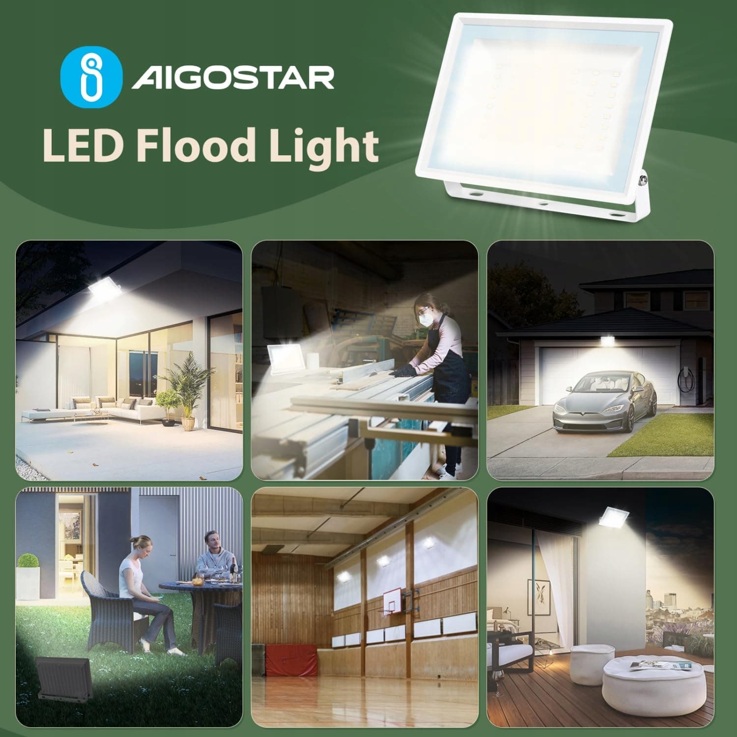 【Super jasny i energooszczędny】Aigostar LED reflektor zewnętrzny wykorzystuje wysokiej jakości chipy LED: wysokie światło, wysoka wydajność świetlna, długa żywotność. Może zastąpić tradycyjną żarówkę. 20W LED reflektor o mocy świetlnej 1650 lumenów może zaoszczędzić ponad 85% energii.