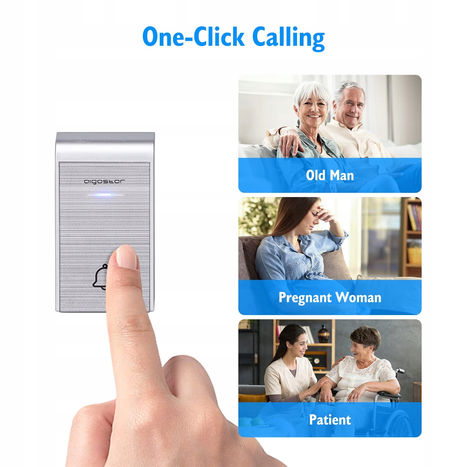 【Bezprzewodowy dzwonek do drzwi】Dzwonek do drzwi ma bezprzewodowy zasięg do 150m, może być używany nie tylko w mieszkaniach, willach, biurach, lokalach handlowych czy ogrodach, ale także jako alarm dla starszych pacjentów i opiekunów.