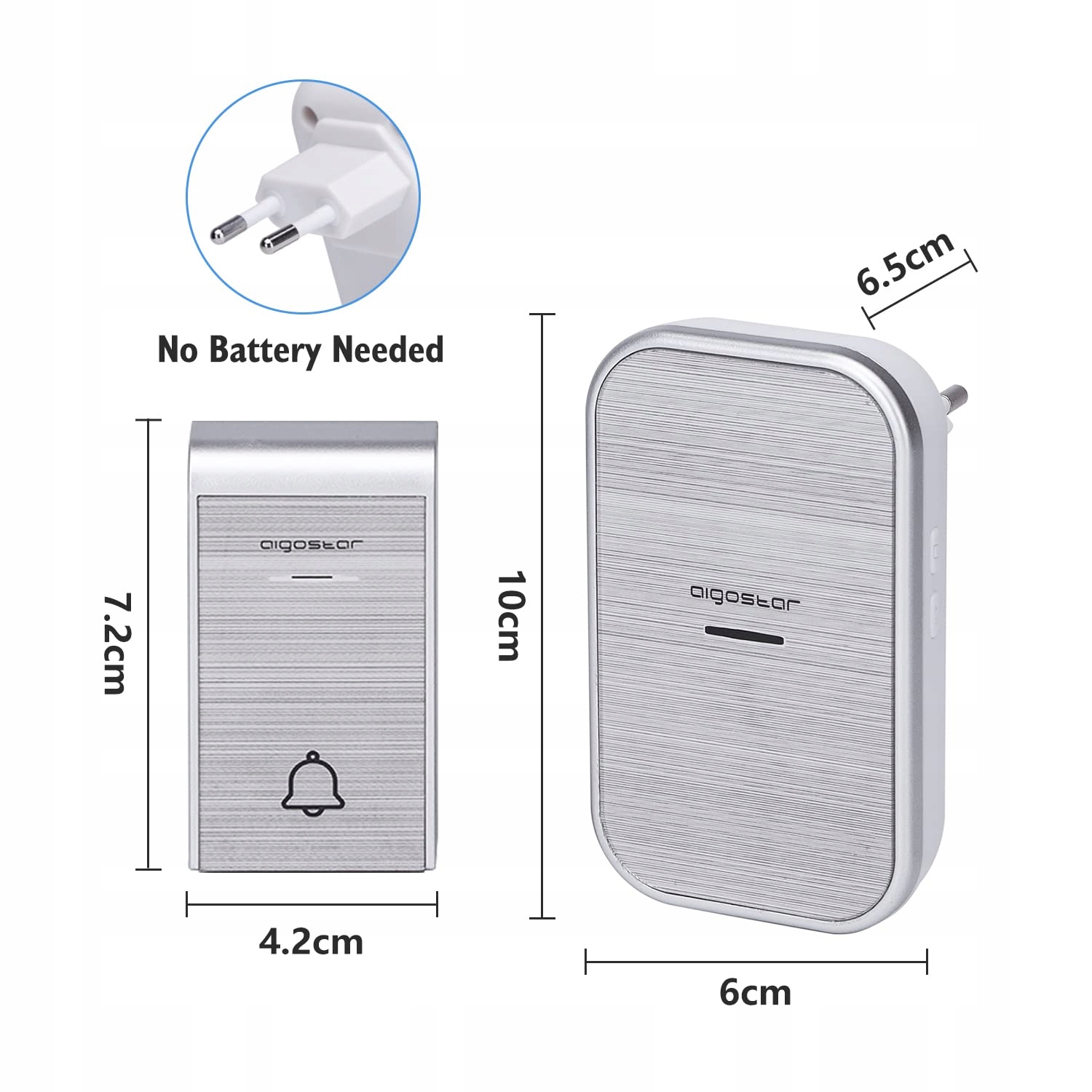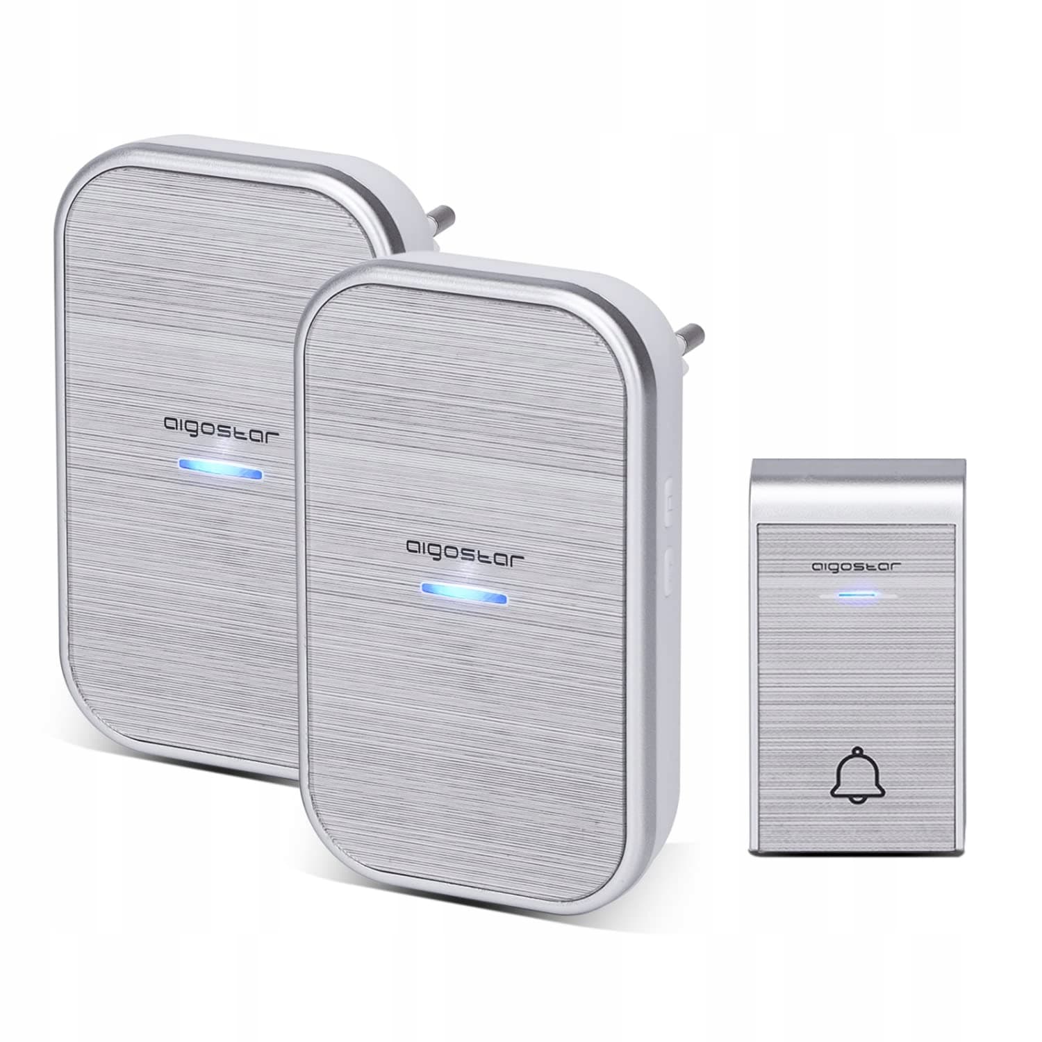 Aigostar-dzwonek do drzwi wodoodporny przenośny zestaw dzwonków bezprzewodowych, zestaw dzwonków do drzwi, bezprzewodowy dzwonek do drzwi, miganie LED, 36 melodii, zasięg 150m, podłączany do gniazdka, 1 przycisk dzwonka i 2 odbiorniki