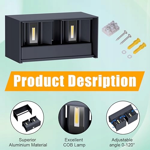 3.【Lepsza jasność】LED kinkiet zewnętrzny/wewnętrzny posiada wbudowane diody COB o długiej żywotności. Górny i dolny kąt oświetlenia wynosi 120°. Rozmiar: 21x11x11cm (8,3x4,3x4,3 cala). Jeśli uważasz, że tradycyjna wersja jest za mała, ten model w pełni spełni Twoje wymagania.