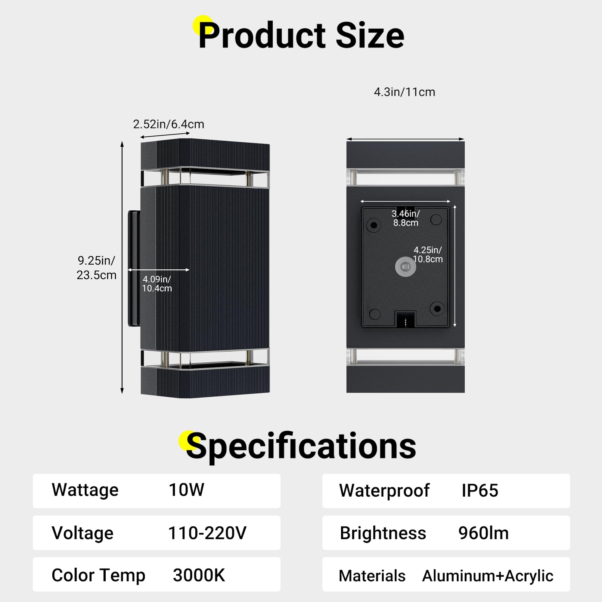 1. 【Nowoczesny kinkiet zewnętrzny】: Ta lampa zewnętrzna ma obudowę wykonaną z wysokiej jakości aluminium, obudowa jest pokryta kolorową powłoką, trwała i łatwa do czyszczenia. Klosz wykonany jest z materiału PC o wysokiej odporności na temperaturę, odporności na uderzenia i wysokiej przepuszczalności światła.