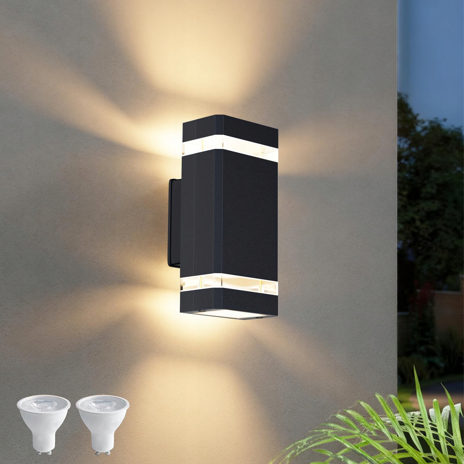 Aipsun Lampa zewnętrzna na ścianę, IP65 Lampa zewnętrzna kinkiet GU10 góra-dół 3000K, LED kinkiet lampa ścienna na zewnątrz - Lampa zewnętrzna oświetlenie garażu i korytarza | Antracyt