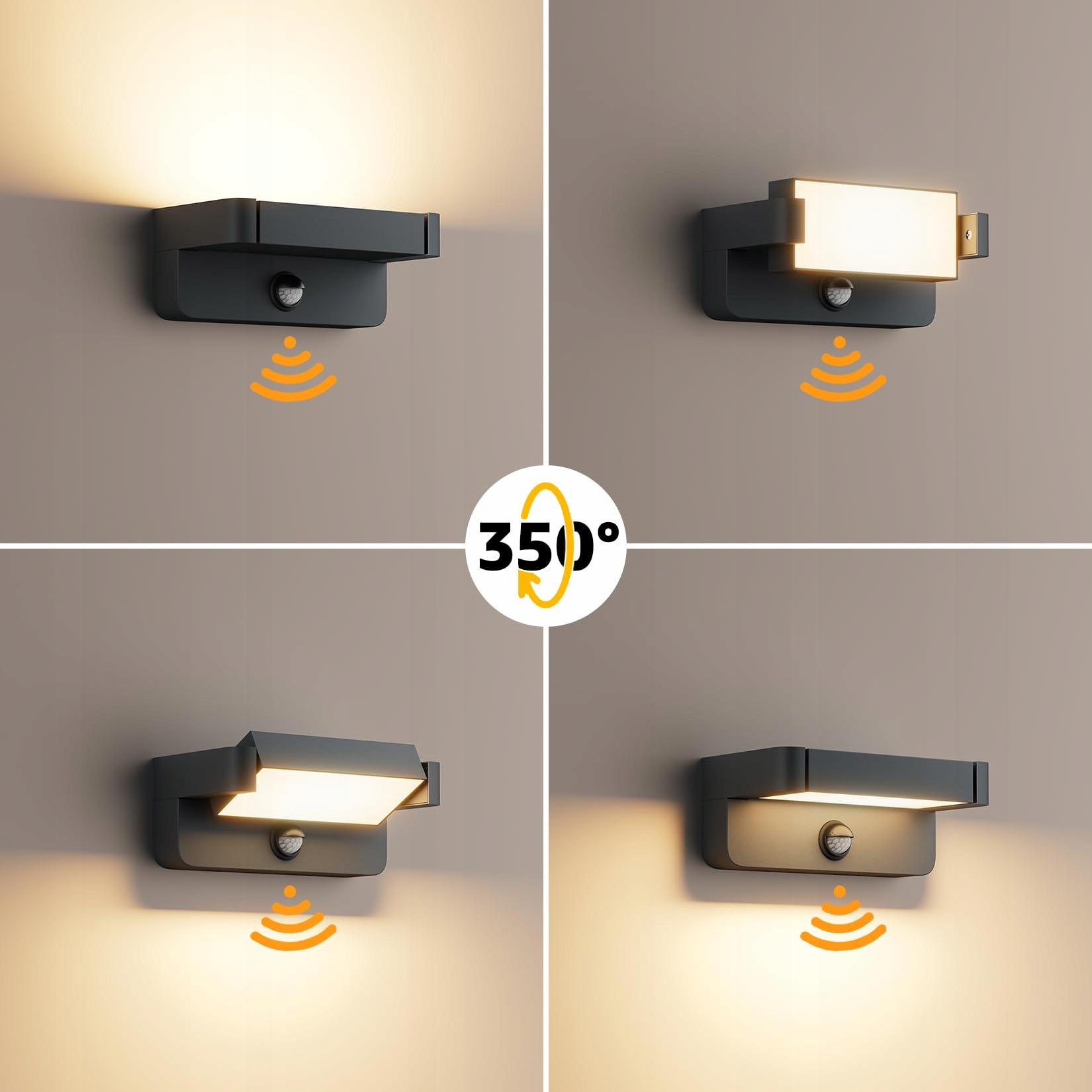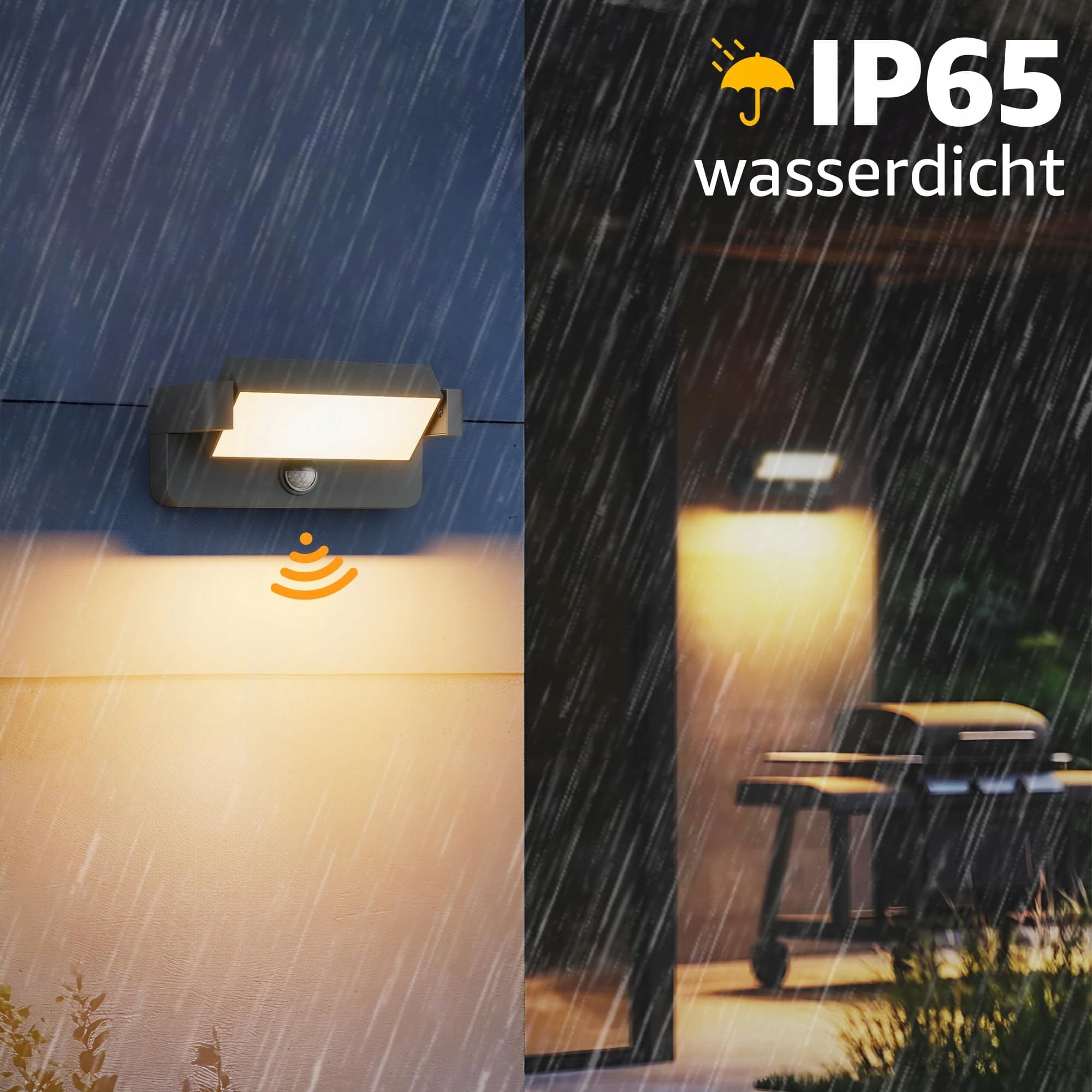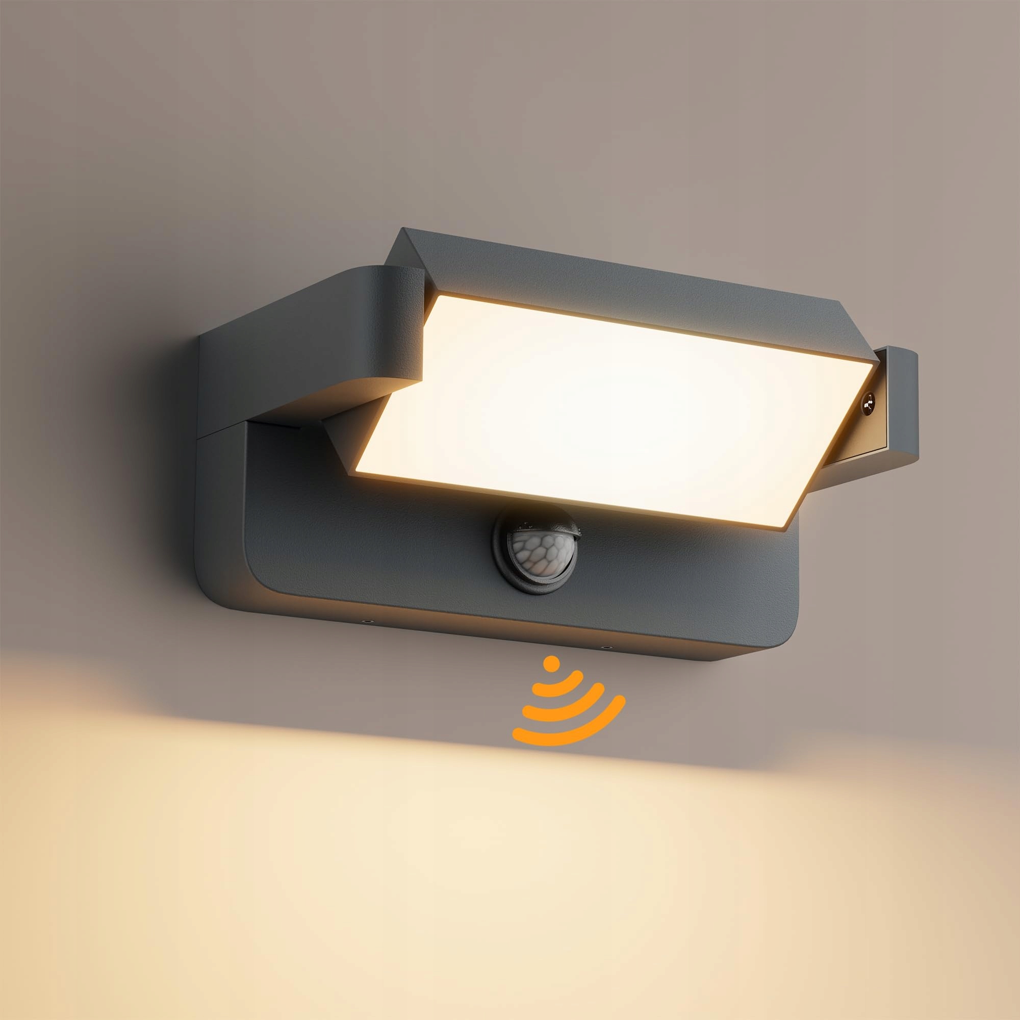 Aipsun 24W Lampa ścienna zewnętrzna z czujnikiem ruchu, LED lampa ścienna do wnętrz i na zewnątrz z regulowanym panelem, IP65 lampa zewnętrzna na ścianę, 3000K ciepła biel na taras, wejście, ogród (antracyt)