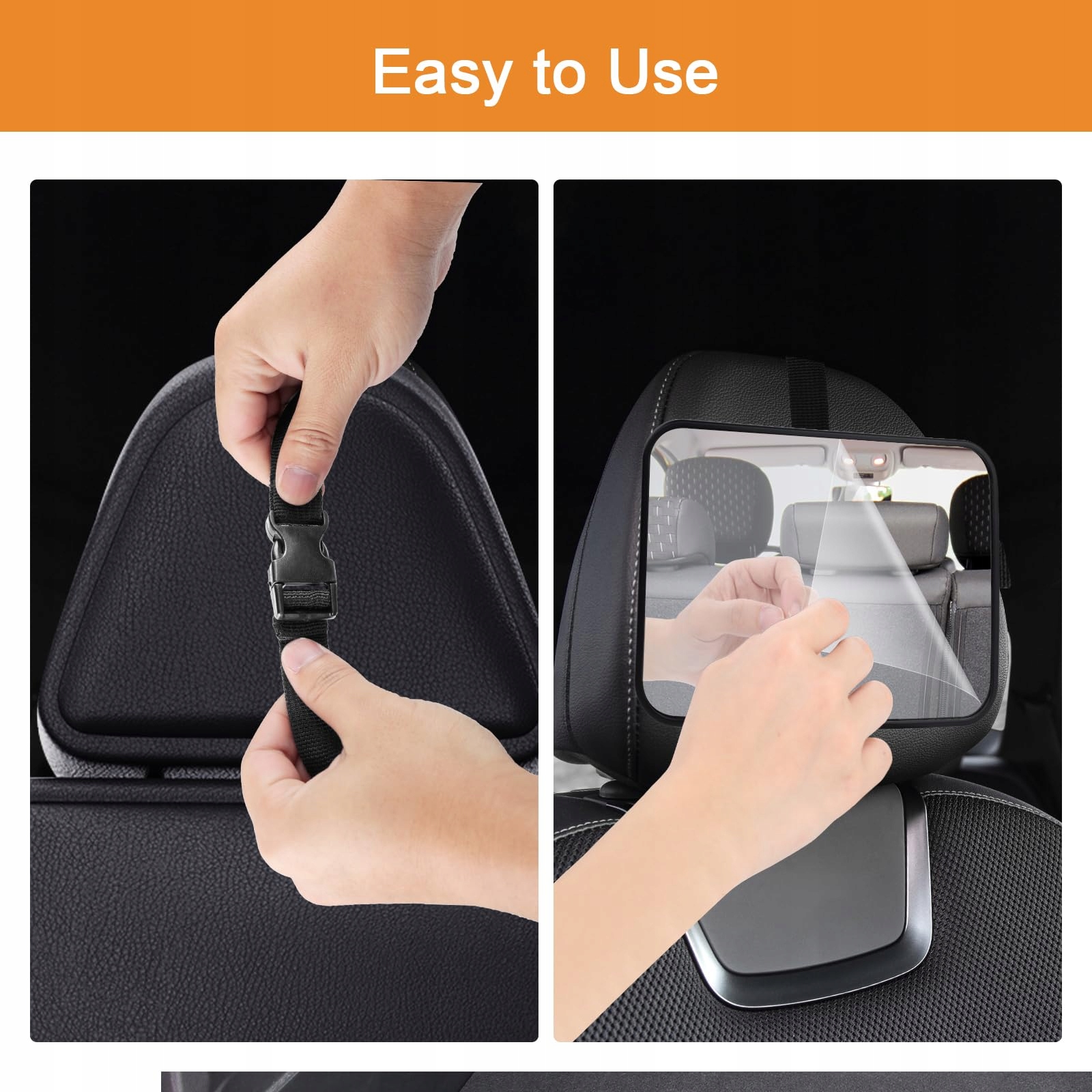 ROZMIAR: 19*13.8cm. Wysokiej jakości regulowane paski z klamrami w lusterkach samochodowych dla dzieci zapewniają pewne mocowanie, 100% odporne na uderzenia, odpowiednie do wszystkich pojazdów z regulowanymi zagłówkami.