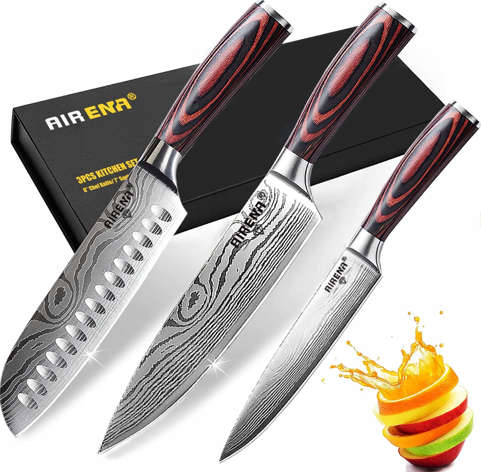 AIRENA Zestaw Noży Kuchennych 3-częściowy Stal Węglowa Damast Wzór