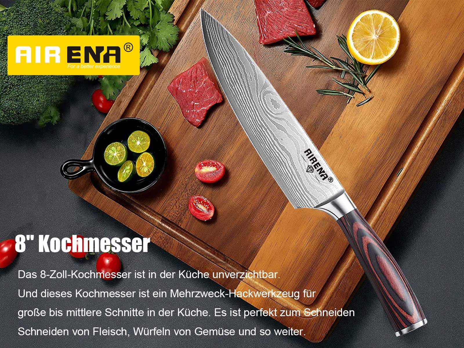 � WYJĄTKOWY I NAJLEPSZY PREZENT - Noże kuchenne AIRENA Classic są pakowane w eleganckie pudełko, to wspaniały prezent dla Twojej żony, rodziny lub przyjaciół na różne okazje, takie jak Dzień Matki, Dzień Ojca, Święto Dziękczynienia, urodziny i inne. Najlepszy wybór dla miłośników gotowania.