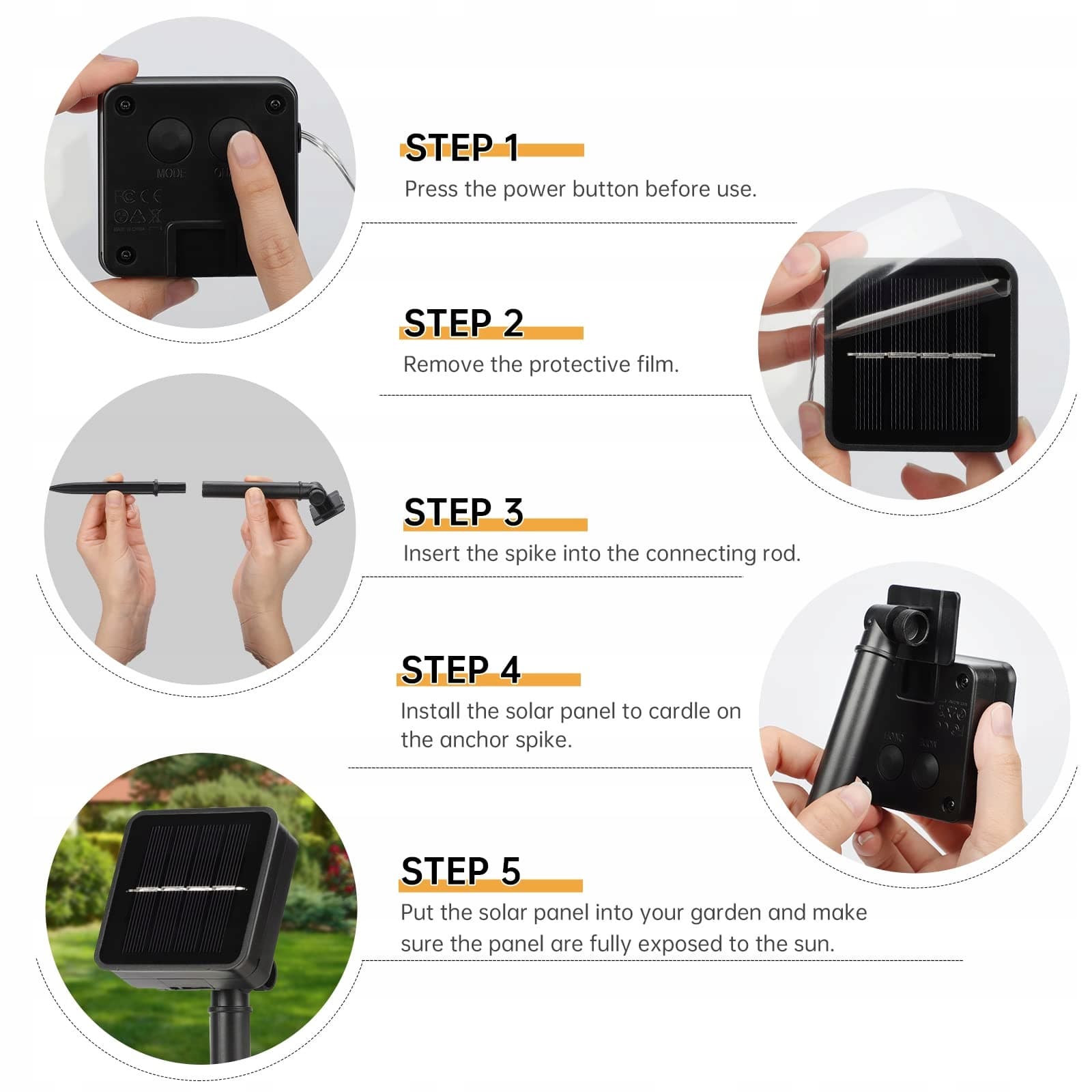 [Inteligentne sterowanie i 8 trybów]8 trybów świetlnych do wyboru, wybierz pożądany efekt świetlny i stwórz romantyczną atmosferę, automatyczne włączanie po zmroku i wyłączanie o świcie, automatyczne ładowanie w ciągu dnia.