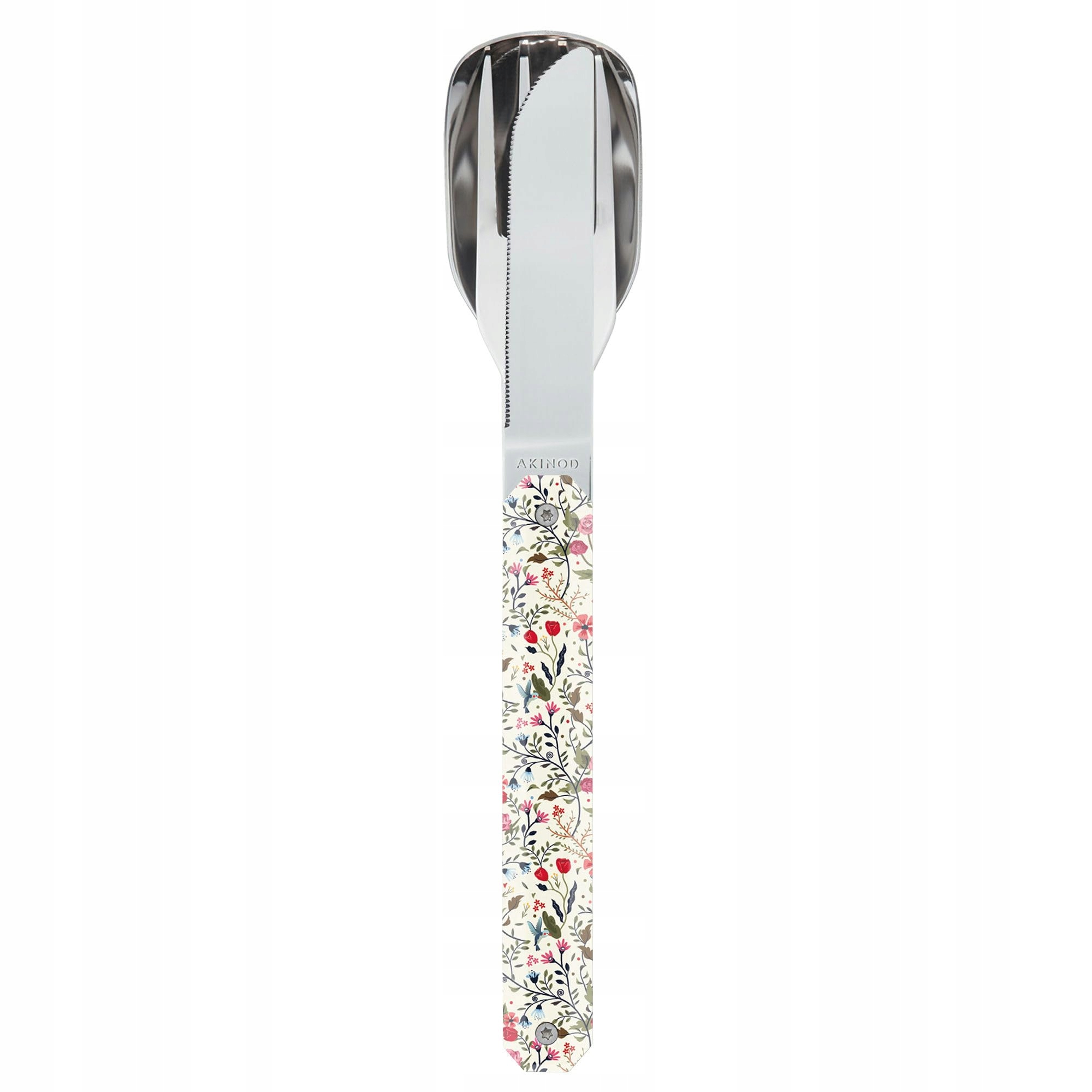 Akinod - Zestaw sztućców stałych 12H34 Pastoral z widelcem, nożem i łyżką - sztućce ze stali nierdzewnej - magnetyczne sztućce na wynos - kompaktowe, trwałe i eleganckie sztućce podróżne