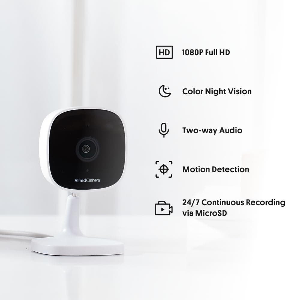 AlfredCamera WLAN Kamera do monitoringu wewnętrznego Full HD 1080p Sterowanie przez aplikację z czujnikiem ruchu, noktowizją i ciągłym nagrywaniem - Monitor dla niemowląt Kamera dla zwierząt 2,4GHz WiFi