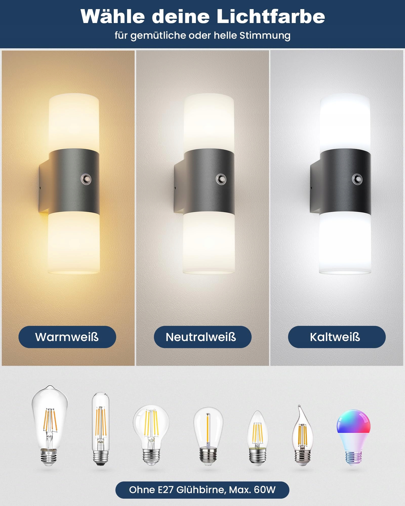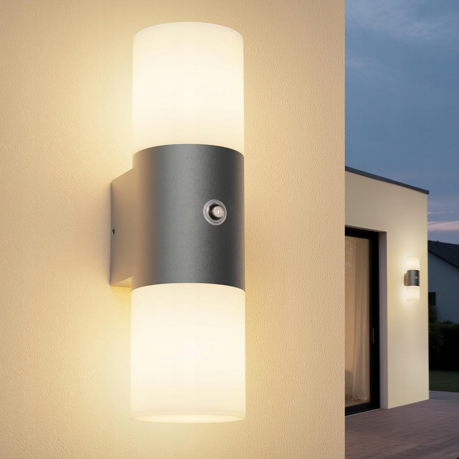 Allesgute E27 zewnętrzna lampa ścienna z czujnikiem zmierzchu antracyt, IP65 lampa ścienna zewnętrzna góra-dół, lampa zewnętrzna max 60W do ogrodu, tarasu, garażu (bez źródła światła)
